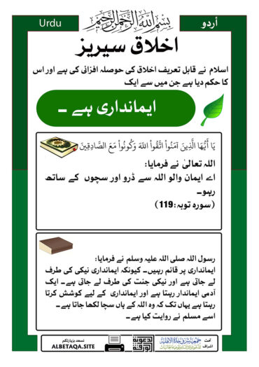 ur-alakhlaq March 6th, 2026 at 02:19pm by albetaqa اخلاقیات پر سیریز – وعدوں کو پورا کرنا Continue reading 4