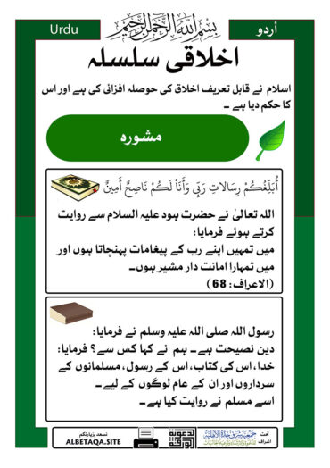 ur-alakhlaq March 6th, 2026 at 02:19pm by albetaqa سلسلہ اخلاقیات – مشاورت (شوریٰ) Continue reading 3