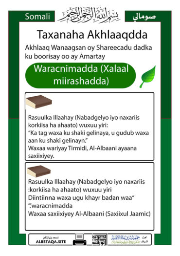 sm-alakhlaq April 16th, 2026 at 09:29pm by albetaqa Taxanaha Akhlaaqdda – Waracnimadda (Xalaal miirashadda) Continue reading 11
