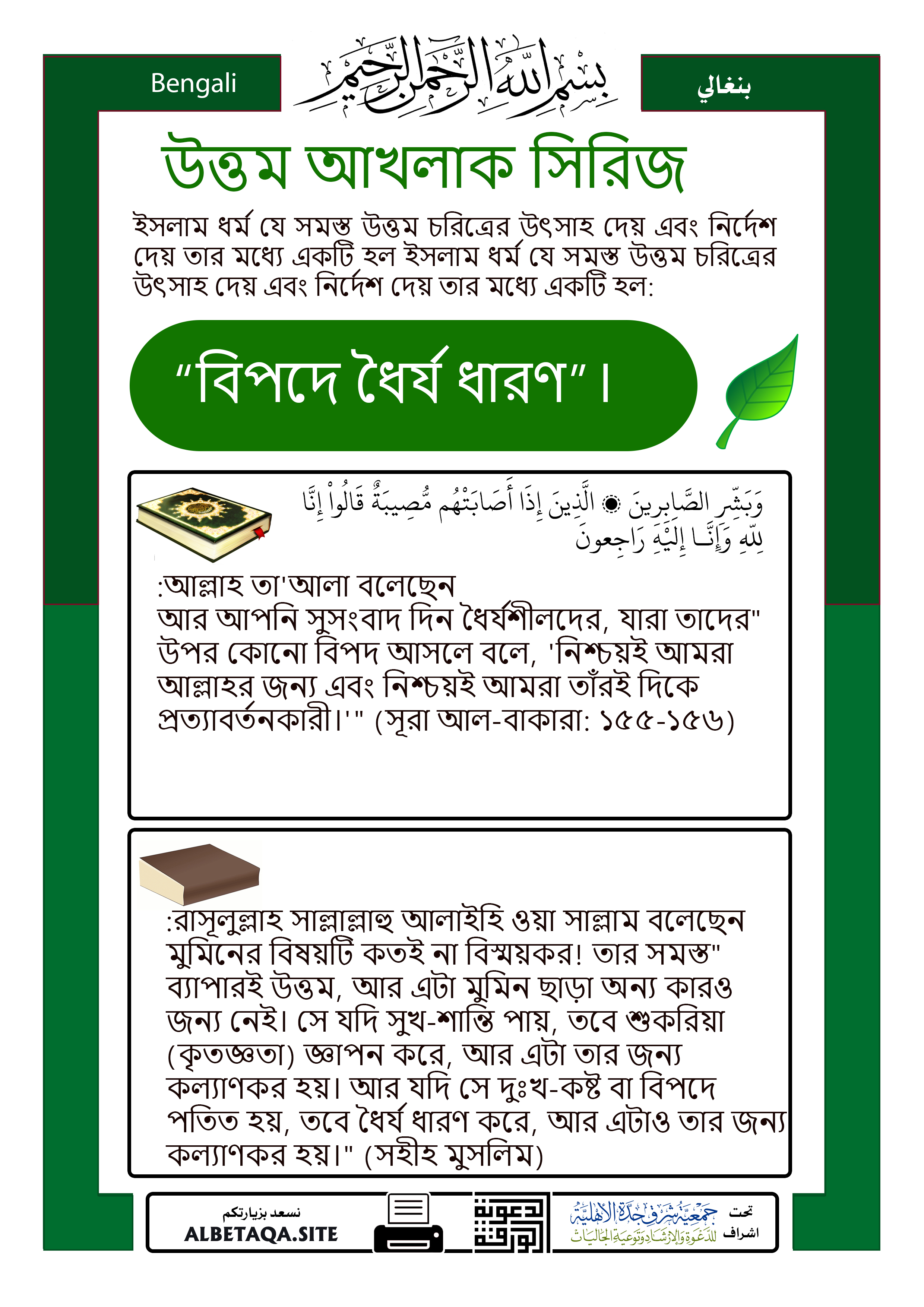 উত্তম আখলাক সিরিজ – “বিপদে ধৈর্য ধারণ”।