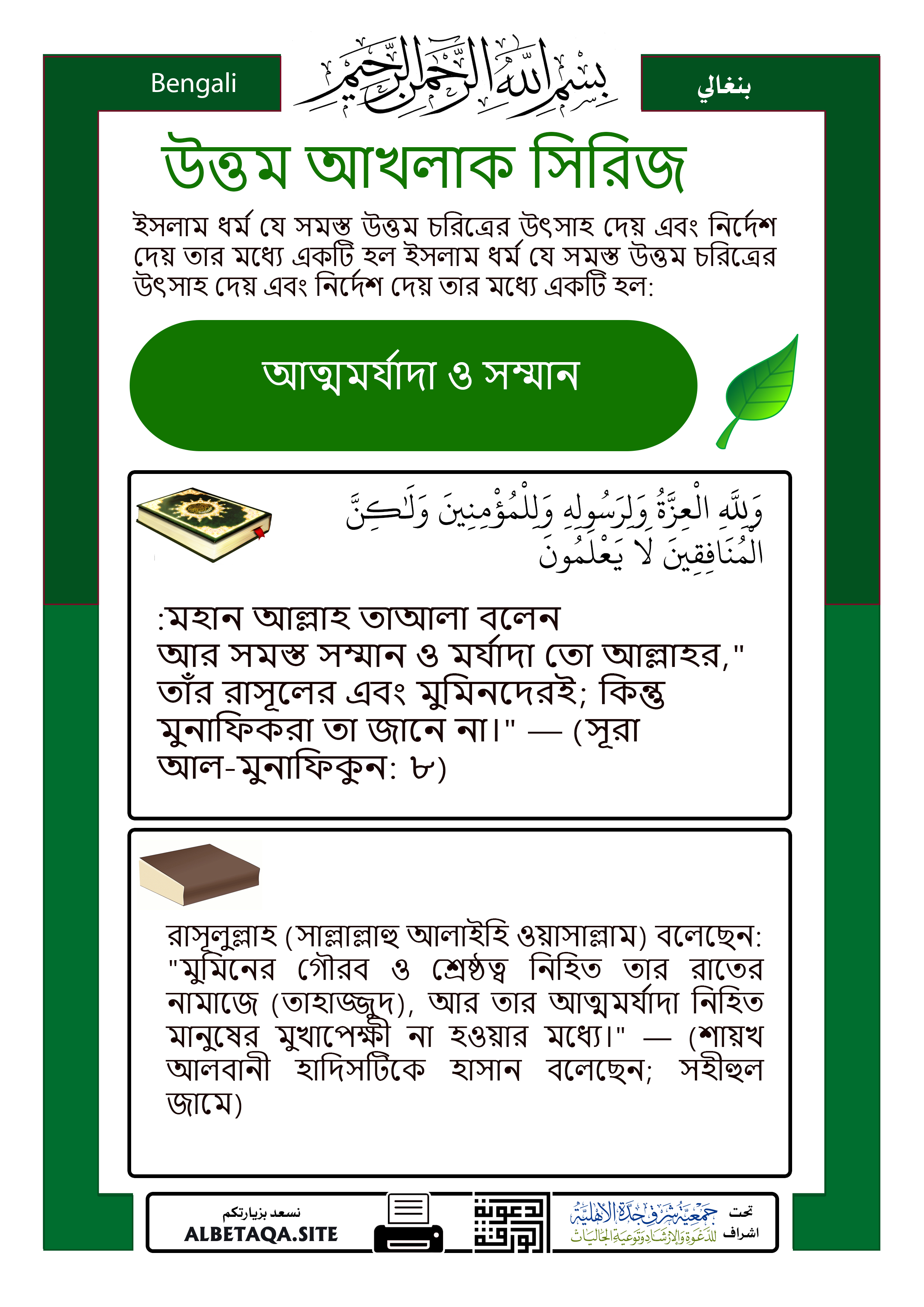 “আর সমস্ত সম্মান ও মর্যাদা তো আল্লাহর, তাঁর রাসূলের এবং মুমিনদেরই; কিন্তু মুনাফিকরা তা জানে না।” — (সূরা আল-মুনাফিকুন: ৮)