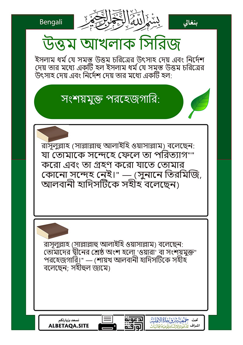 “তোমাদের দ্বীনের শ্রেষ্ঠ অংশ হলো ‘ওয়ারা’ বা সংশয়মুক্ত পরহেজগারি।” — (শায়খ আলবানী হাদিসটিকে সহীহ বলেছেন; সহীহুল জামে)