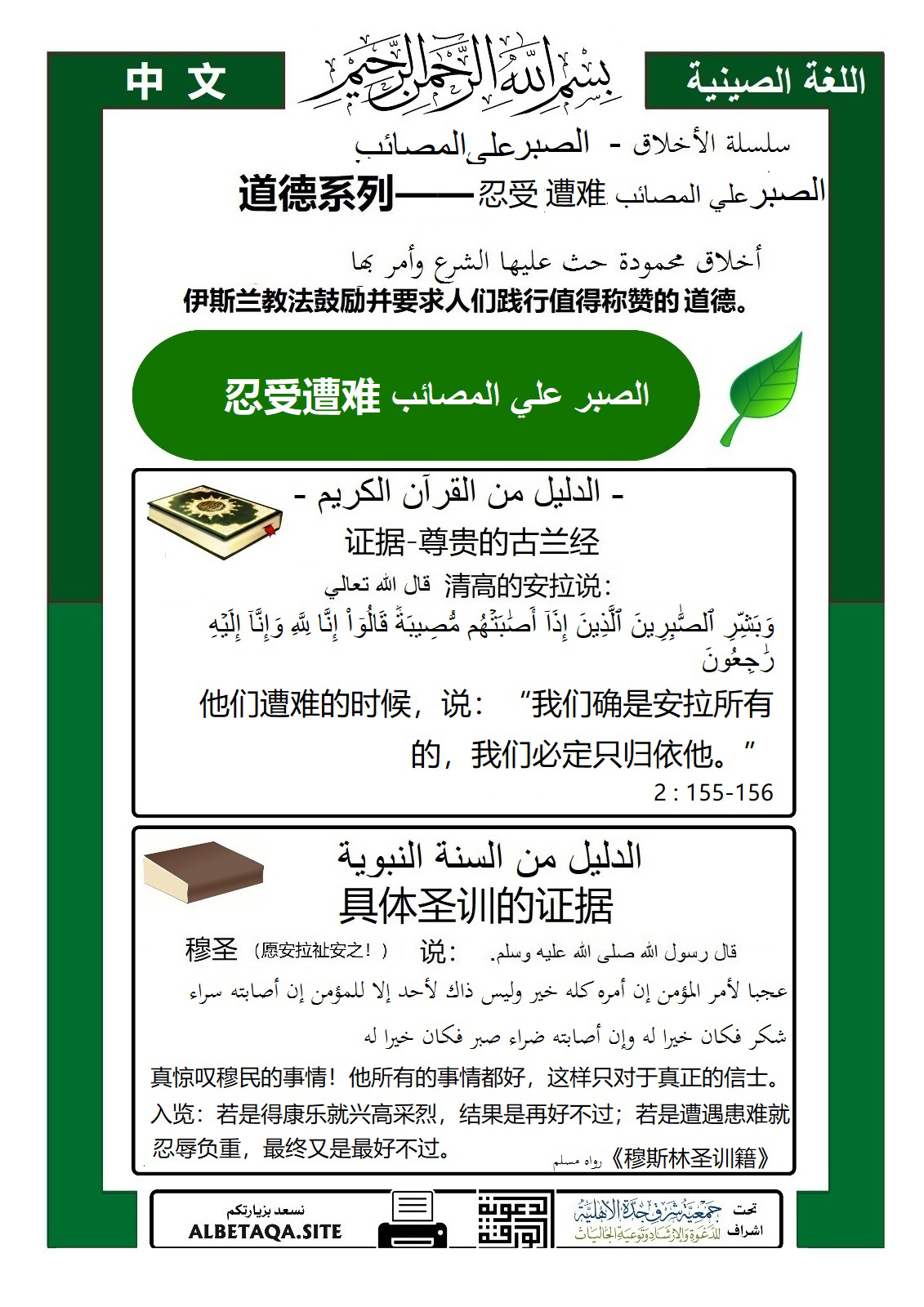 الصبر على المصائب —— 道德系列——忍受遭难