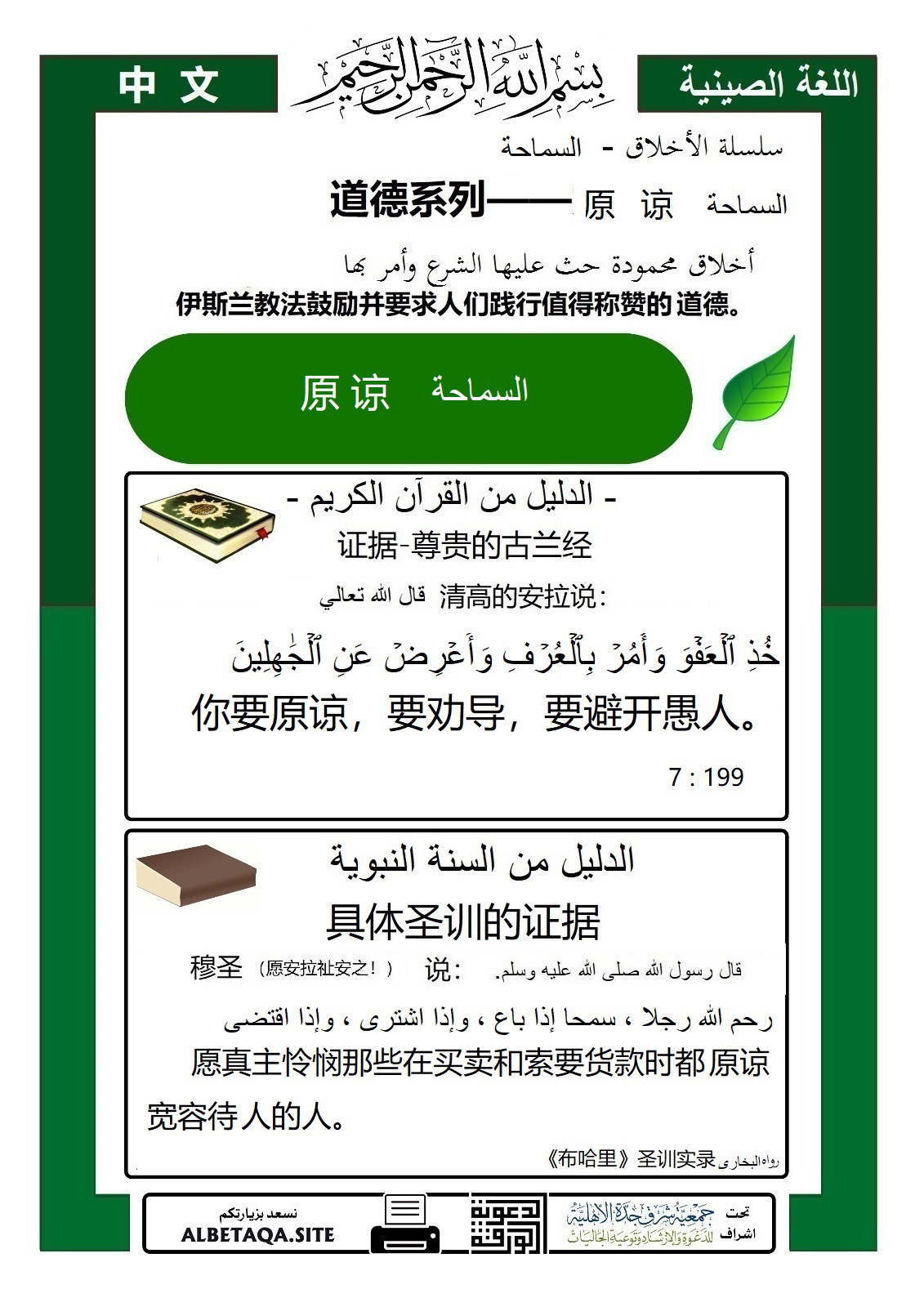 خُذِ ٱلْعَفْوَ وَأْمُرْ بِٱلْعُرْفِ وَأَعْرِضْ عَنِ ٱلْجَٰهِلِينَ