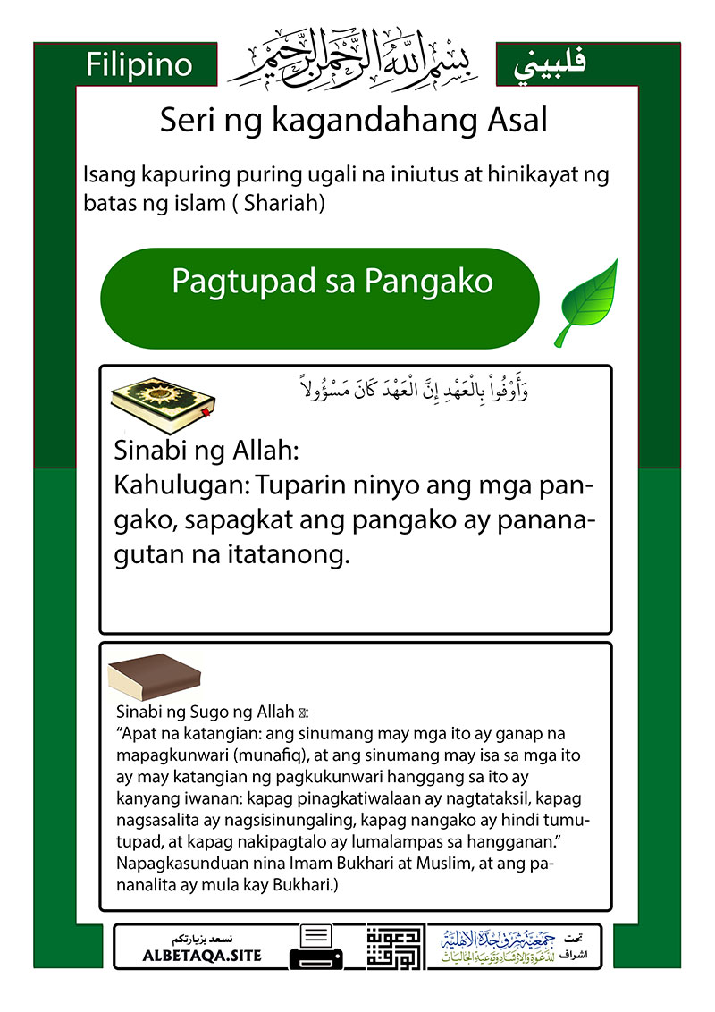 Kahulugan: Tuparin ninyo ang mga pangako, sapagkat ang pangako ay pananagutan na itatanong.