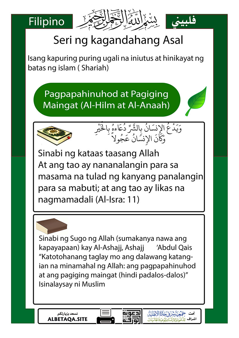 Pagpapahinuhod at Pagiging Maingat (Al-Hilm at Al-Anaah
