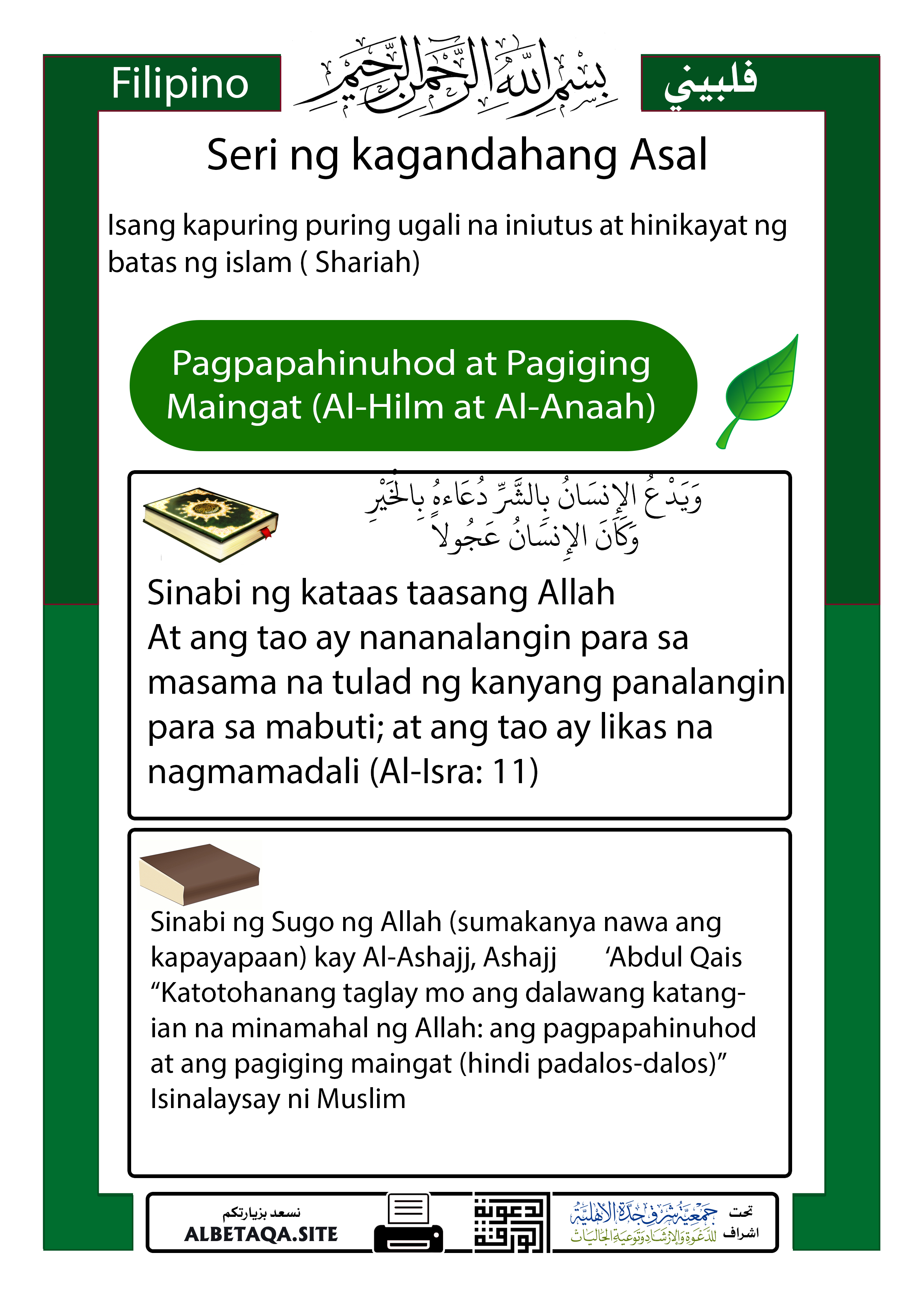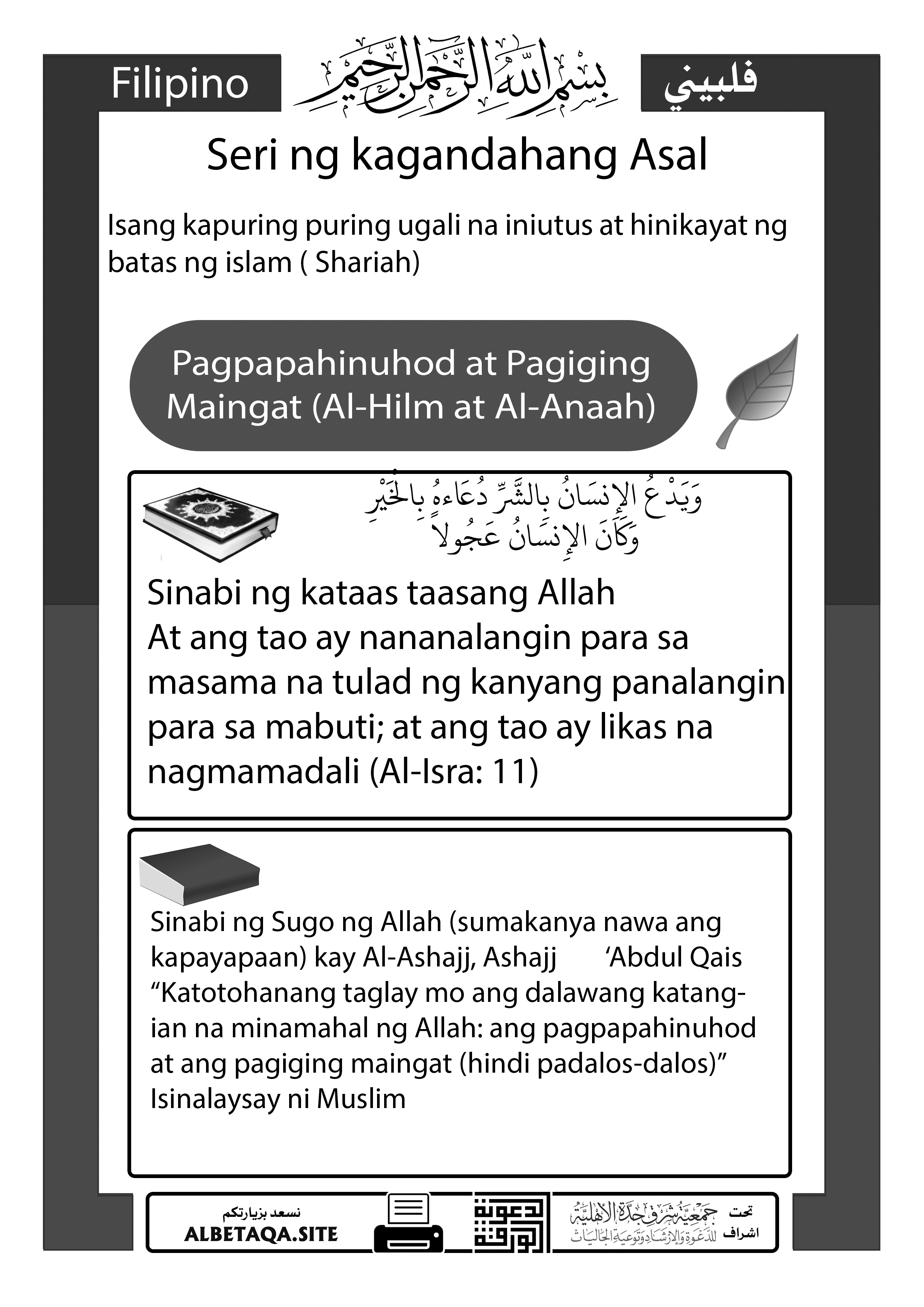 Serye ng Mabubuting Asal – Pagpapahinuhod at Pagiging Maingat (Al-Hilm at Al-Anaah)