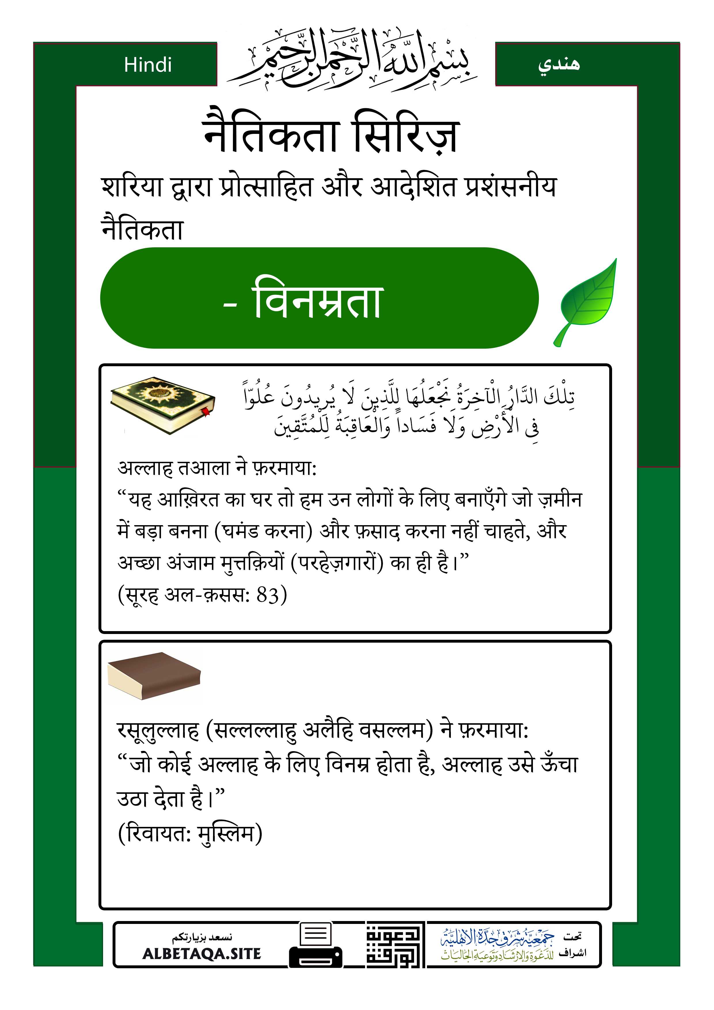 “जो कोई अल्लाह के लिए विनम्र होता है, अल्लाह उसे ऊँचा उठा देता है।”