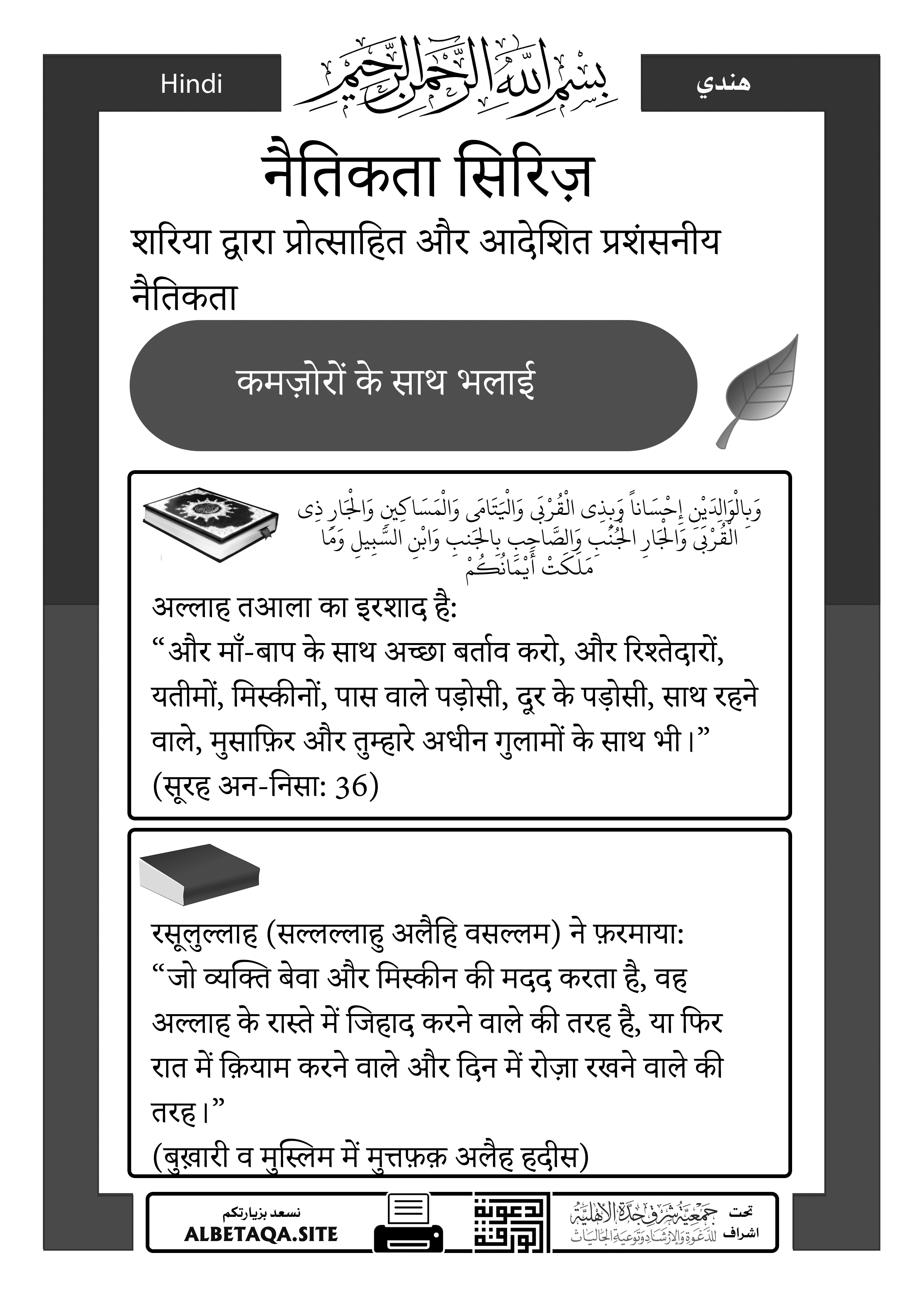 अख़लाक़ की श्रृंखला – कमज़ोरों के साथ भलाई