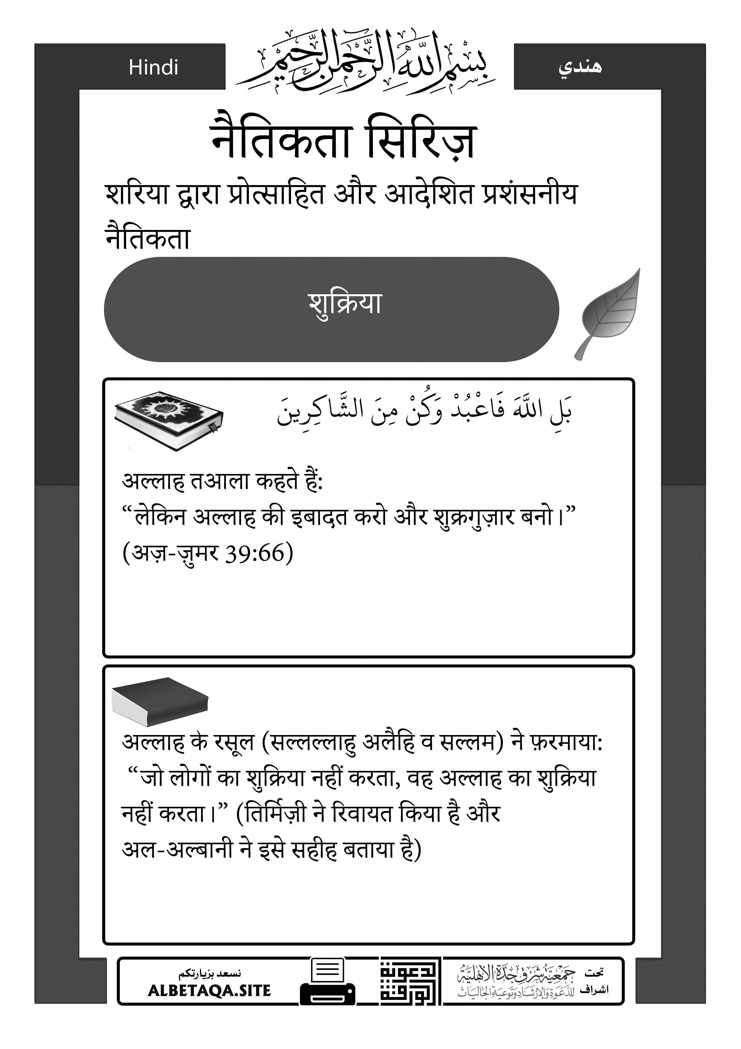 “लेकिन अल्लाह की इबादत करो और शुक्रगुज़ार बनो।” (अज़-ज़ुमर 39:66)