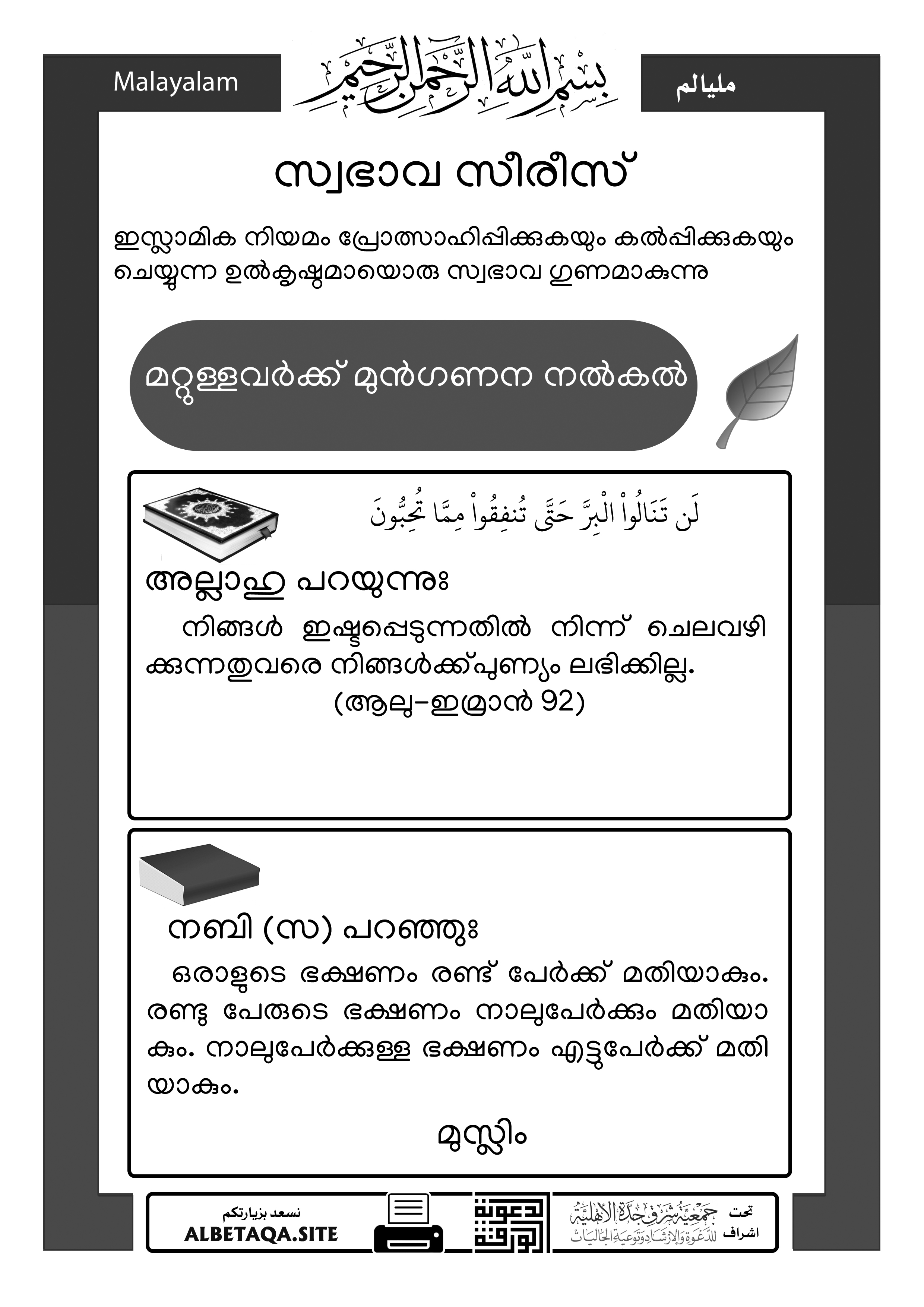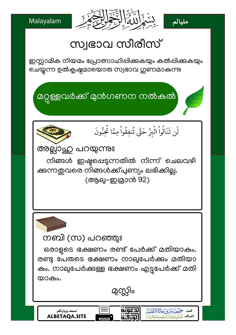 നിങ്ങൾ ഇഷ്ടപ്പെടുന്നതിൽ നിന്ന് ചെലവഴിക്കുന്നതുവരെ നിങ്ങൾക്ക്പുണ്യം ലഭിക്കില്ല. (ആലു-ഇമ്രാൻ 92)