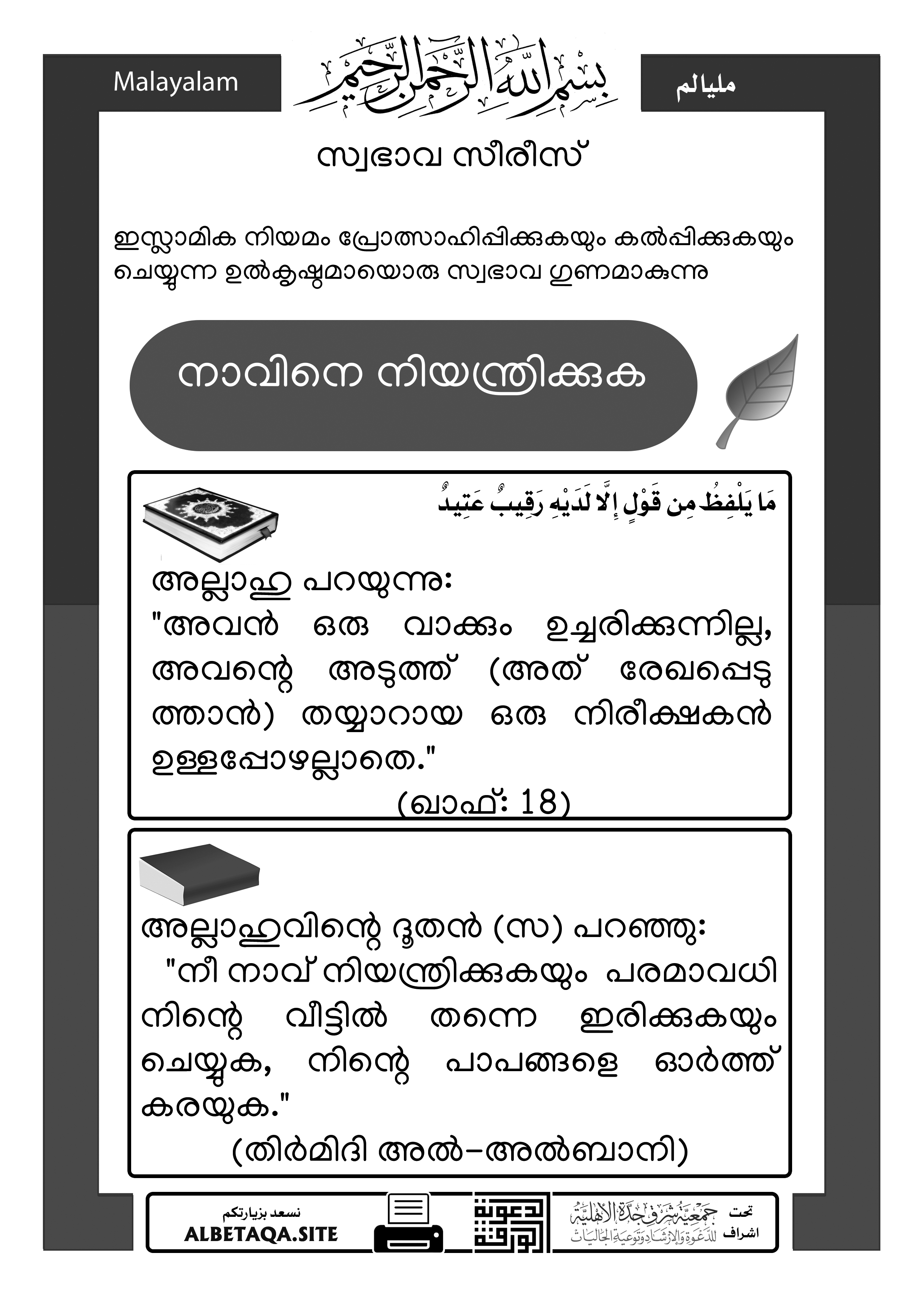 “നീ നാവ് നിയന്ത്രിക്കുകയും പരമാവധി നിന്റെ വീട്ടിൽ തന്നെ ഇരിക്കുകയും ചെയ്യുക, നിന്റെ പാപങ്ങളെ ഓർത്ത് കരയുക.”