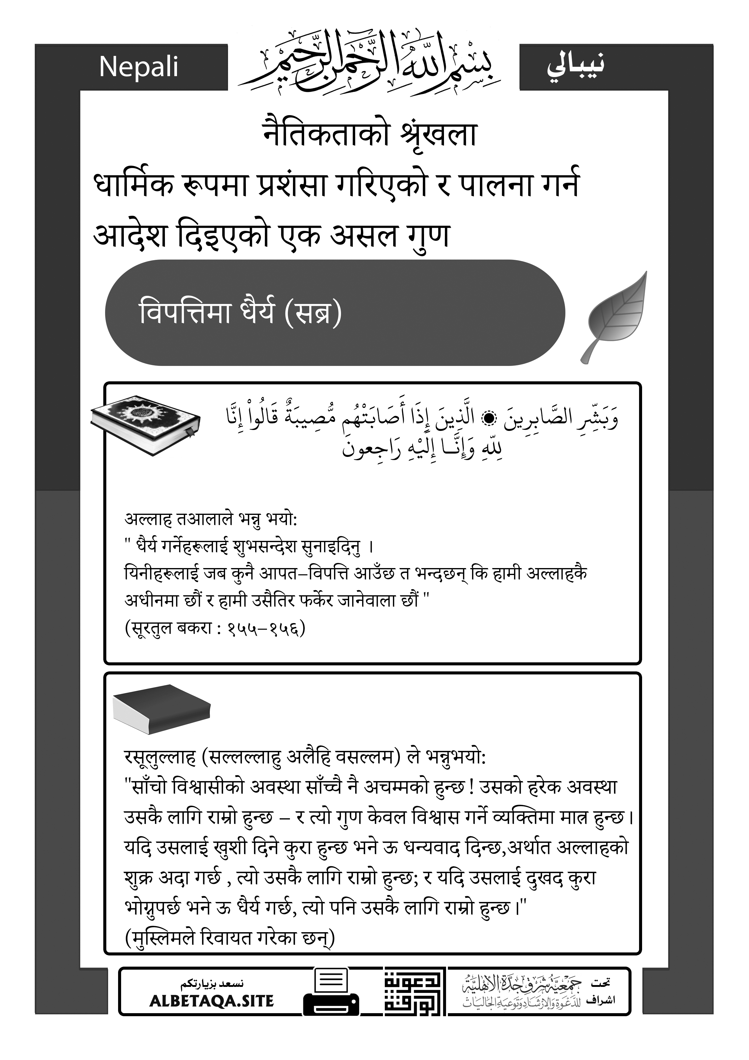 नैतिकताको श्रृङ्खला – विपत्तिमा धैर्य (मुसिबतमा सब्र)
