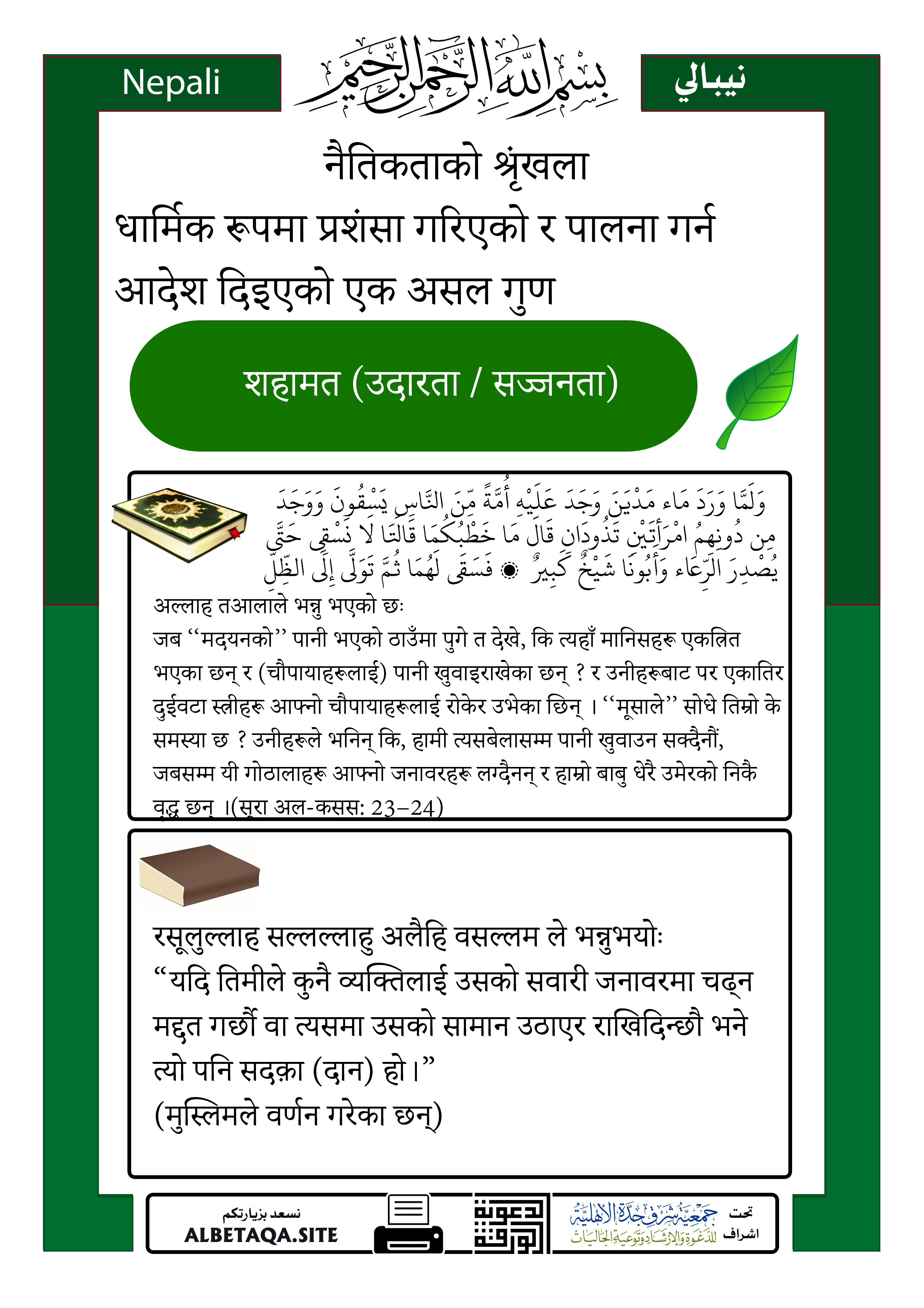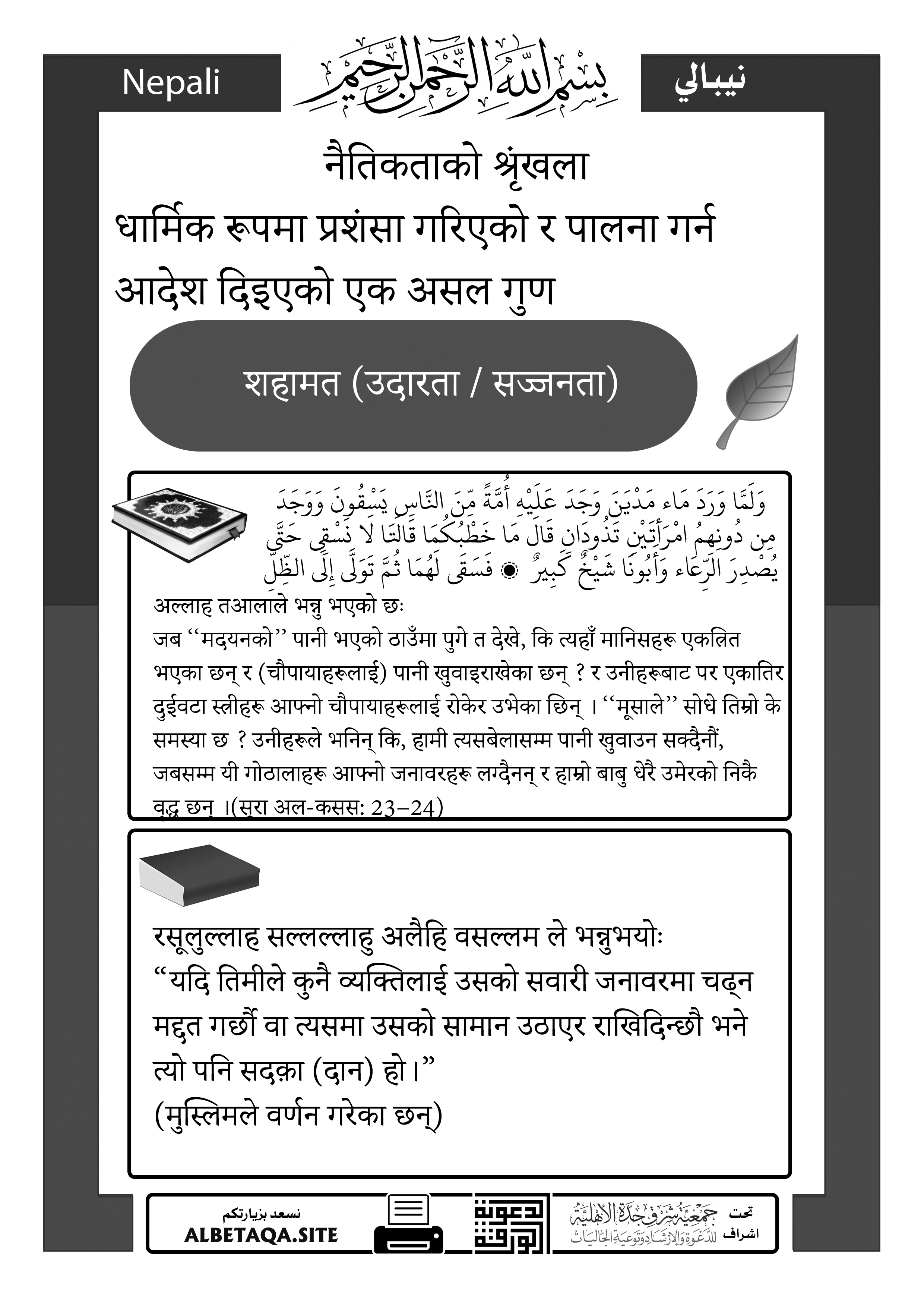 नैतिकताको शृङ्खला – शहामत (उदारता / सज्जनता)