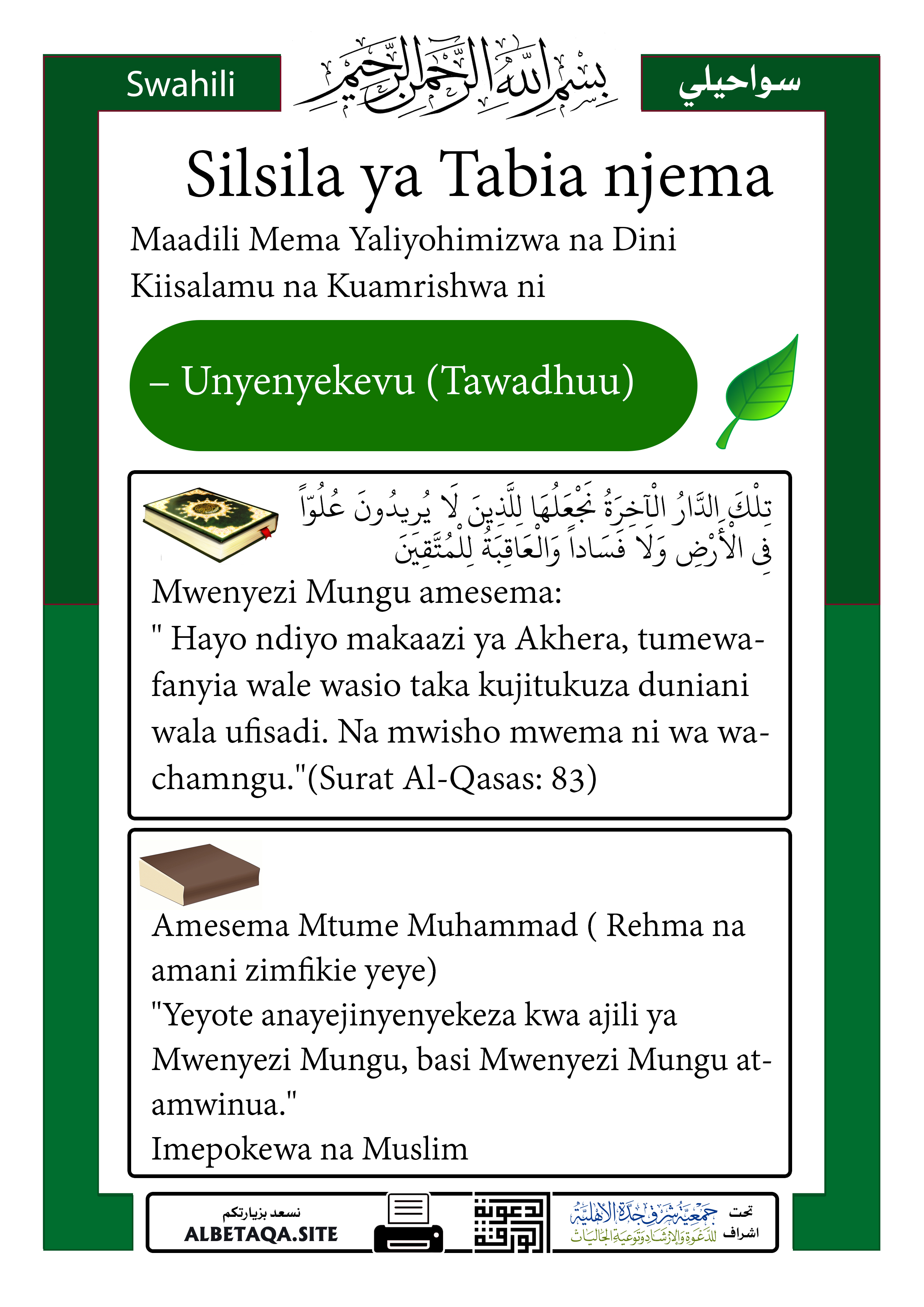 Silsila ya Tabia njema – Unyenyekevu (Tawadhuu)