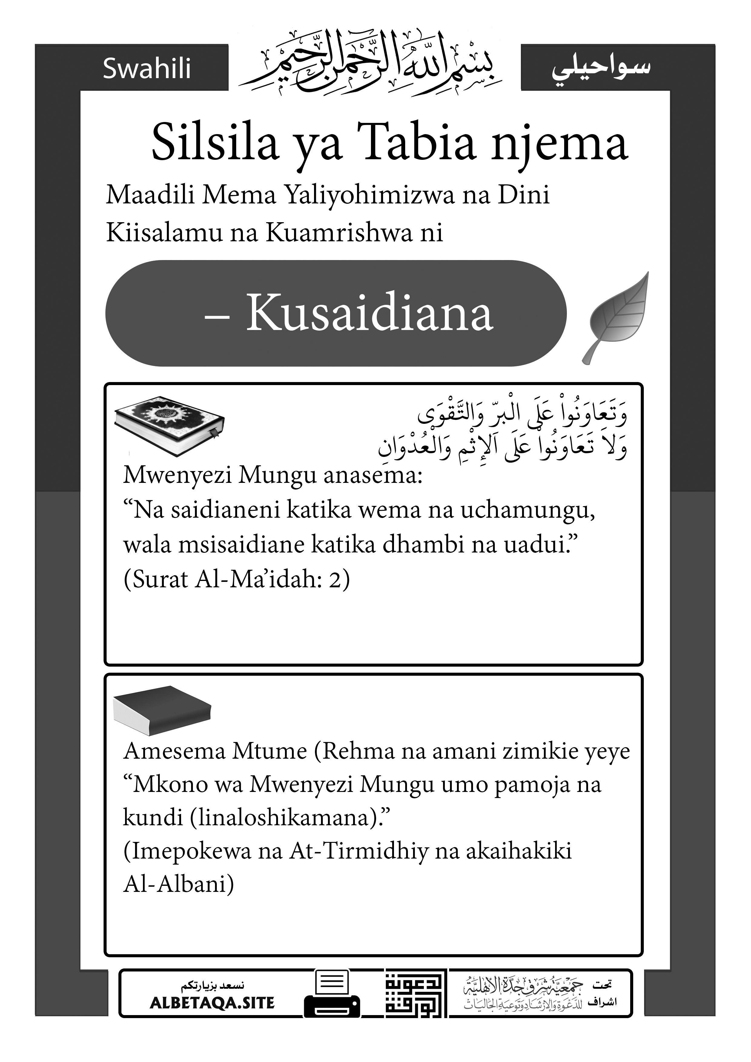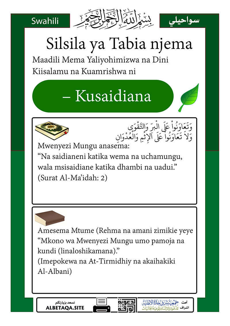 Ni tabia njema sana ambazo zimesifiwa na kuamrishwa na Uislamu ni Kusaidiana