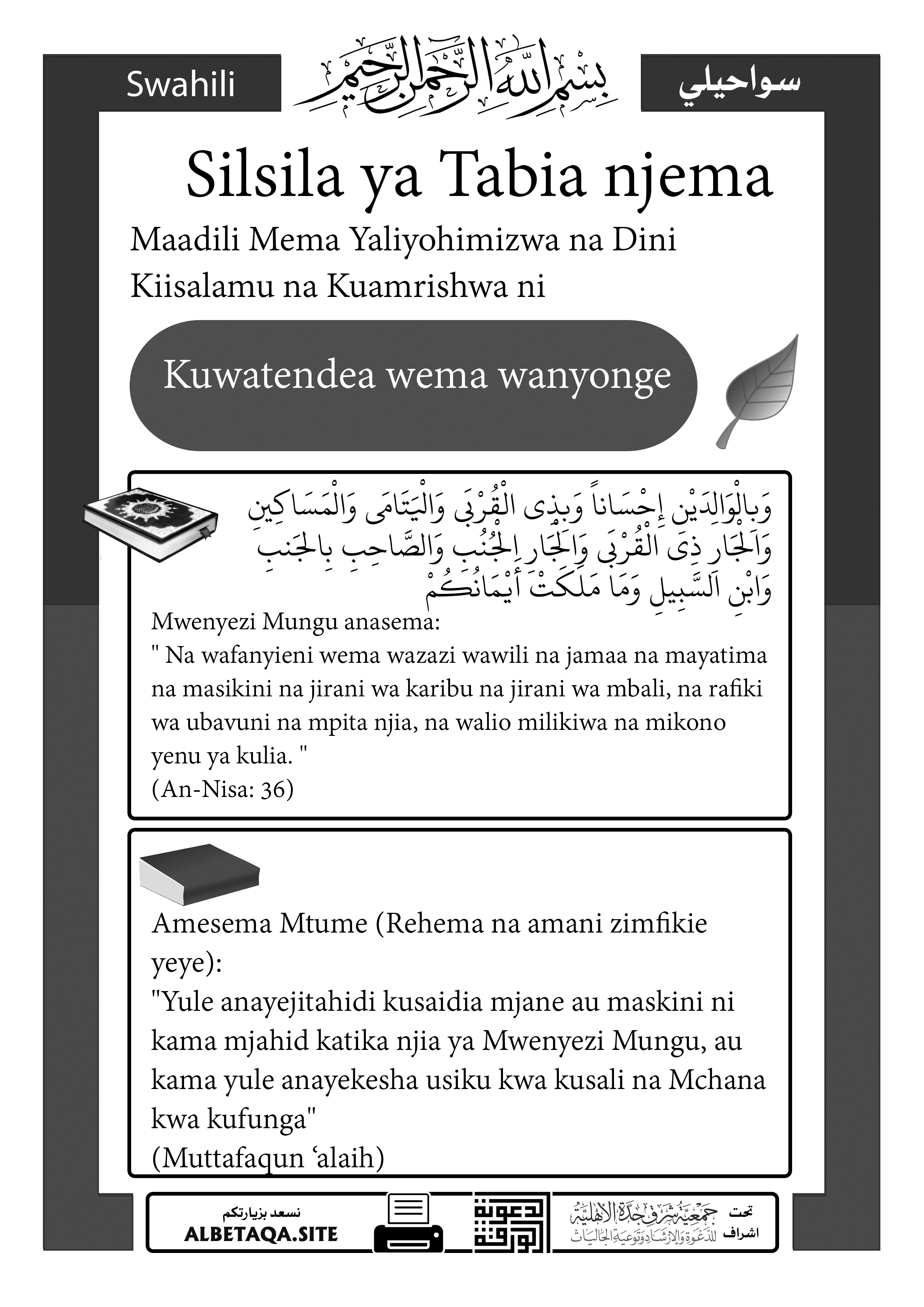 Silsila ya Tabia njema – Kuwatendea wema wanyonge