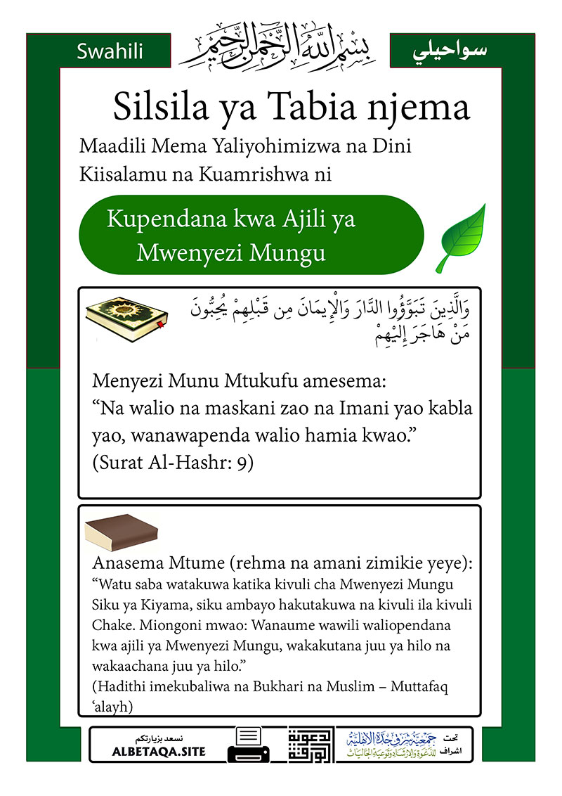 Silsila ya Tabia njema – Kupendana kwa Ajili ya Mwenyezi Mungu Maadili Mema Yaliyohimizwa na Dini na Kuamrishwa ni