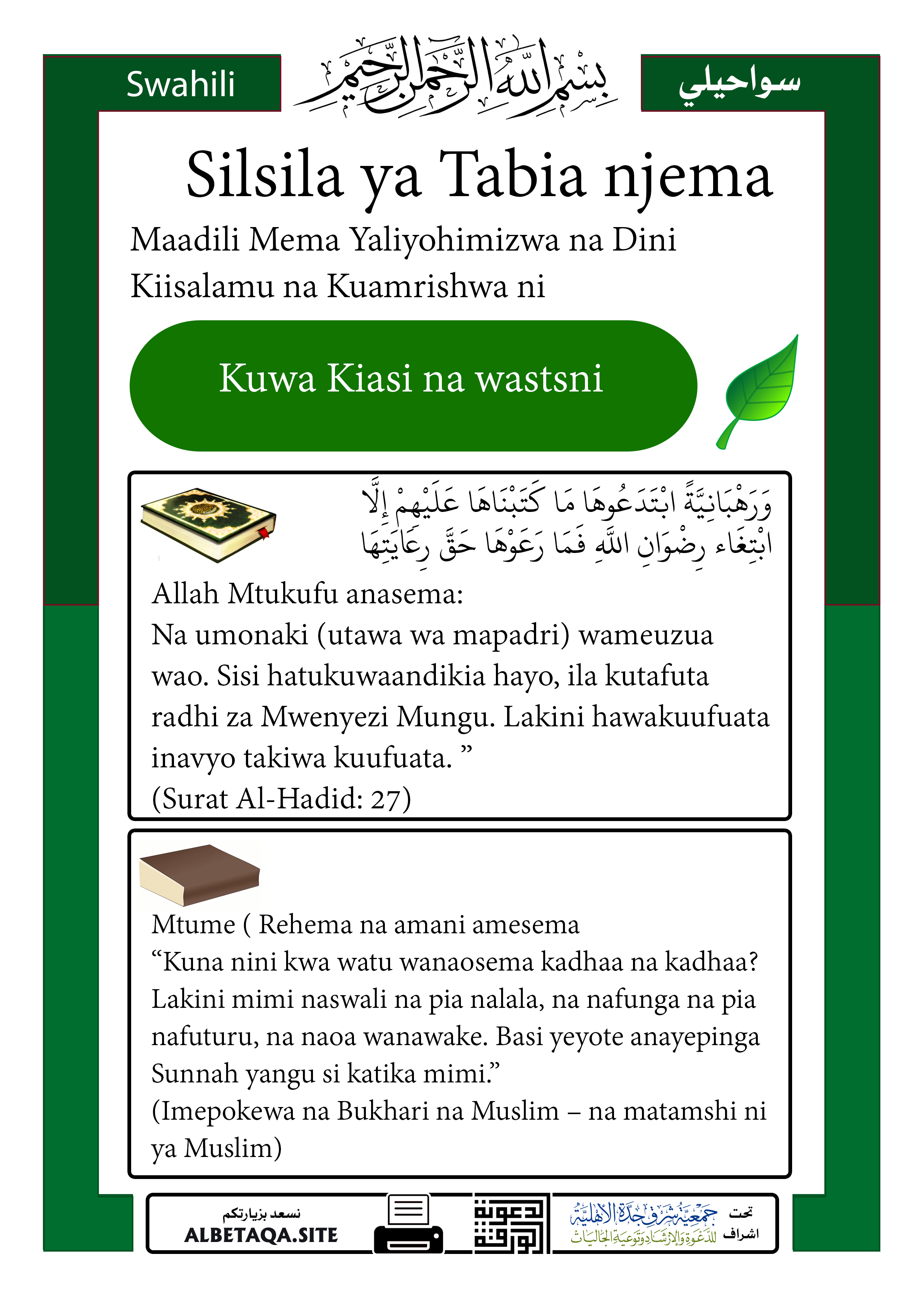 Silsila ta Tabia njema– Kuwa Kiasi na wastsni