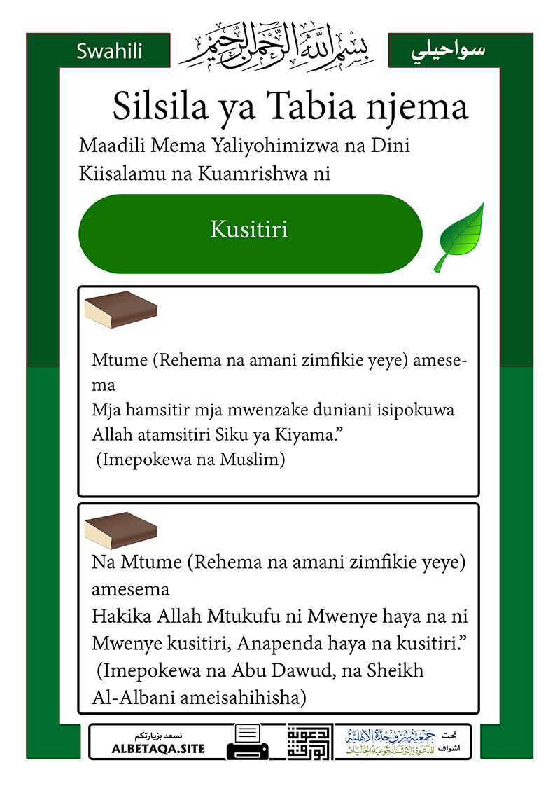 Mja hamsitir mja mwenzake duniani isipokuwa Allah atamsitiri Siku ya Kiyama.”