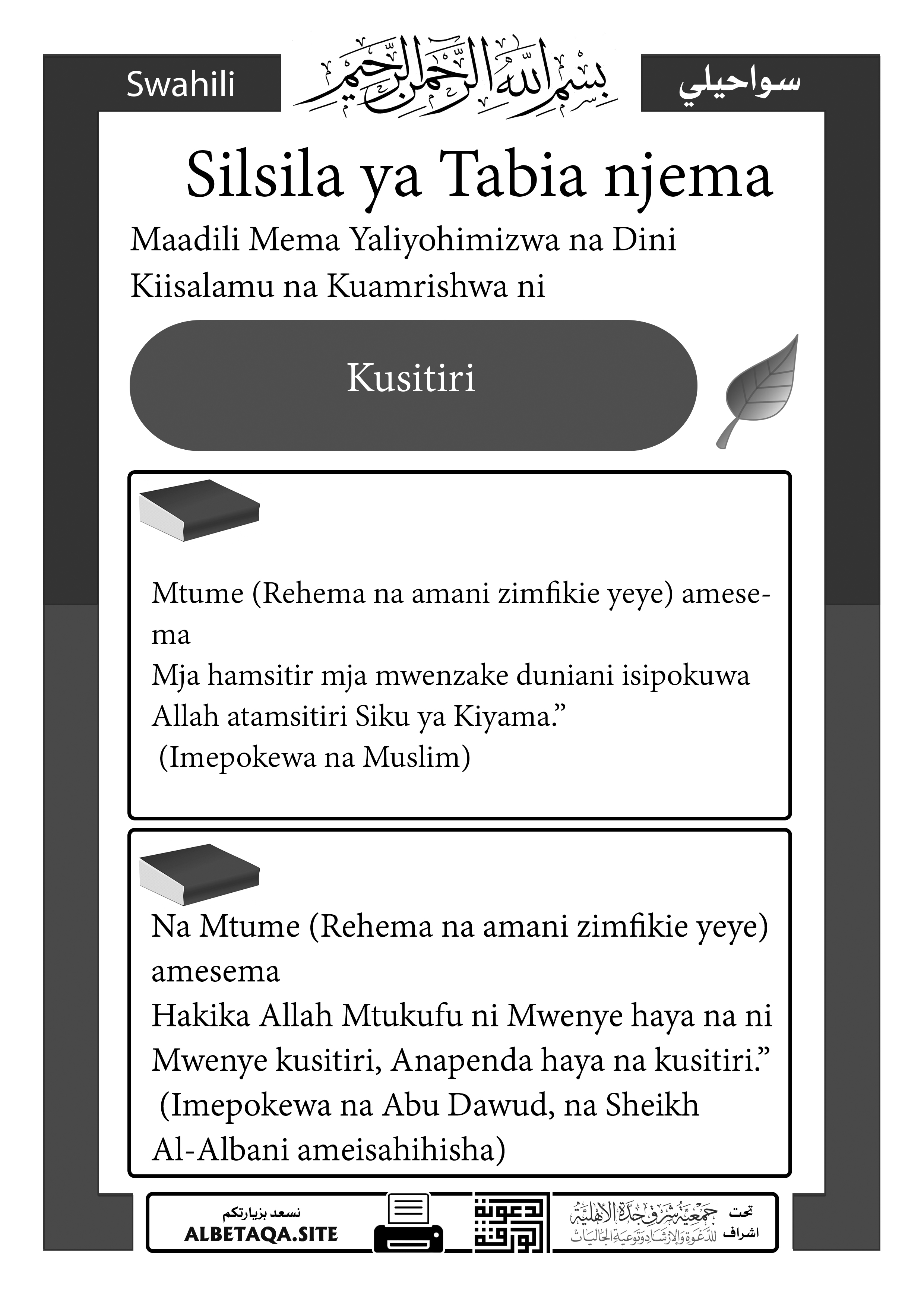 Hakika Allah Mtukufu ni Mwenye haya na ni Mwenye kusitiri, Anapenda haya na kusitiri.”