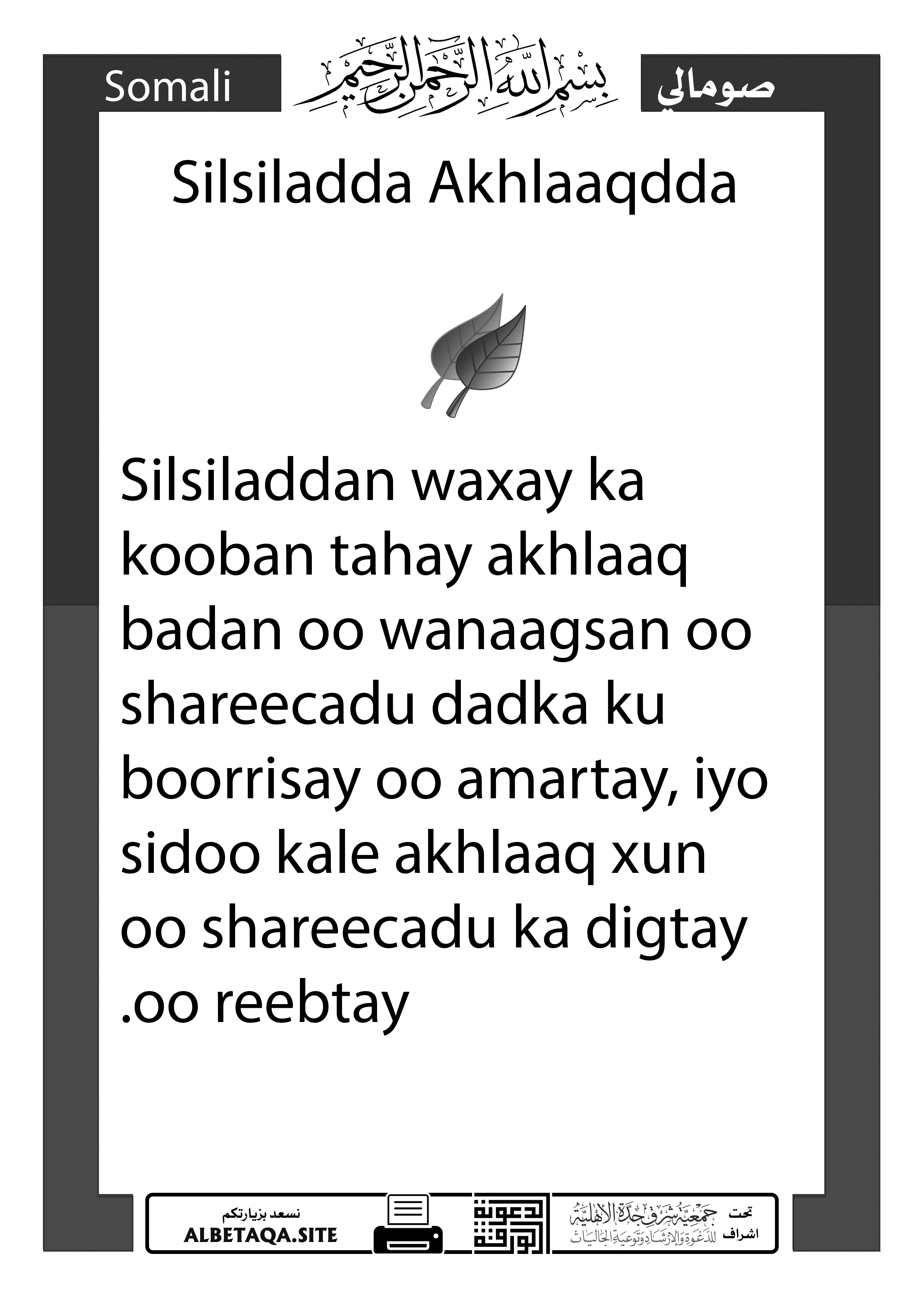Silsiladda Akhlaaqdda new post