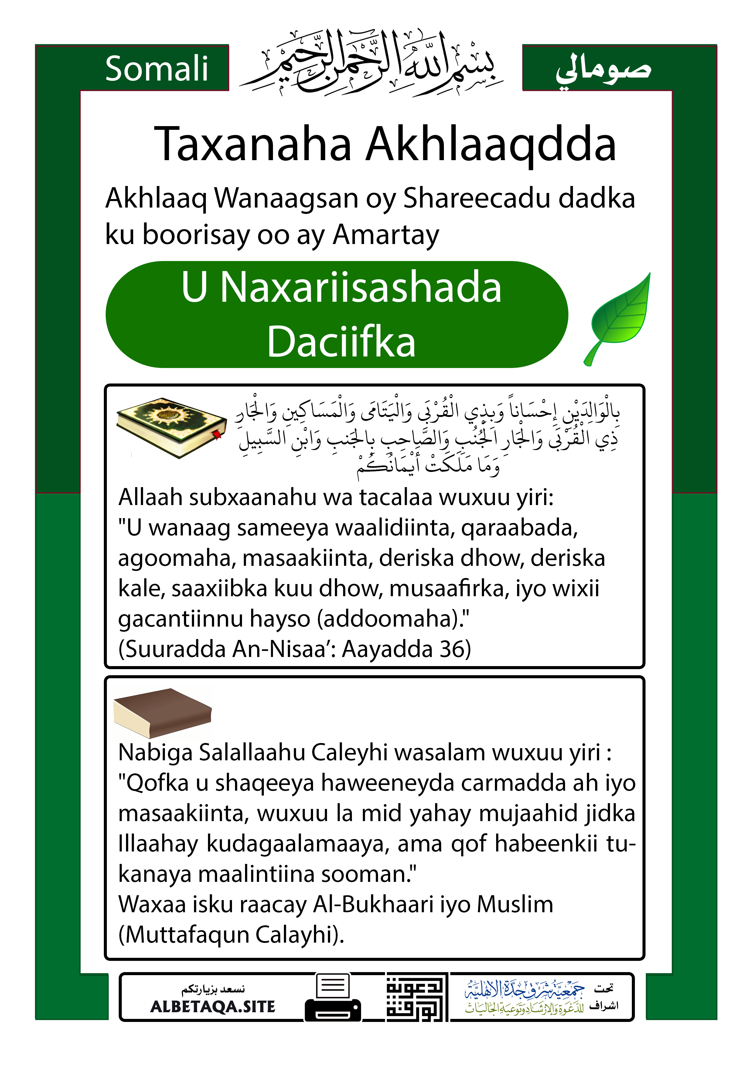 Silsiladda Akhlaaqdda – U Naxariisashada Daciifka (الإحسان إلى الضعفاء)
