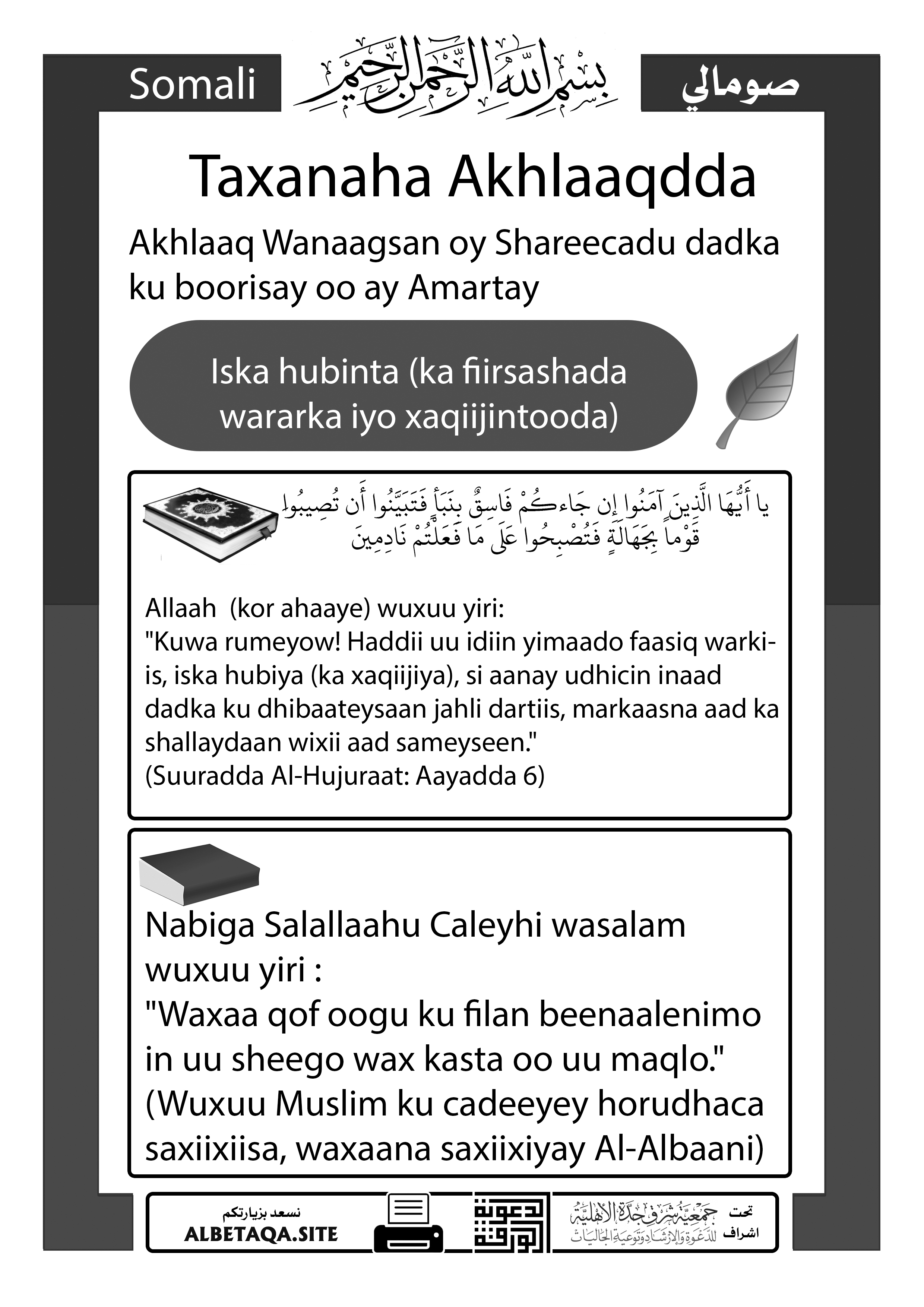 Silsiladda Akhlaaqdda – Iska hubinta (ka fiirsashada wararka iyo xaqiijintooda)