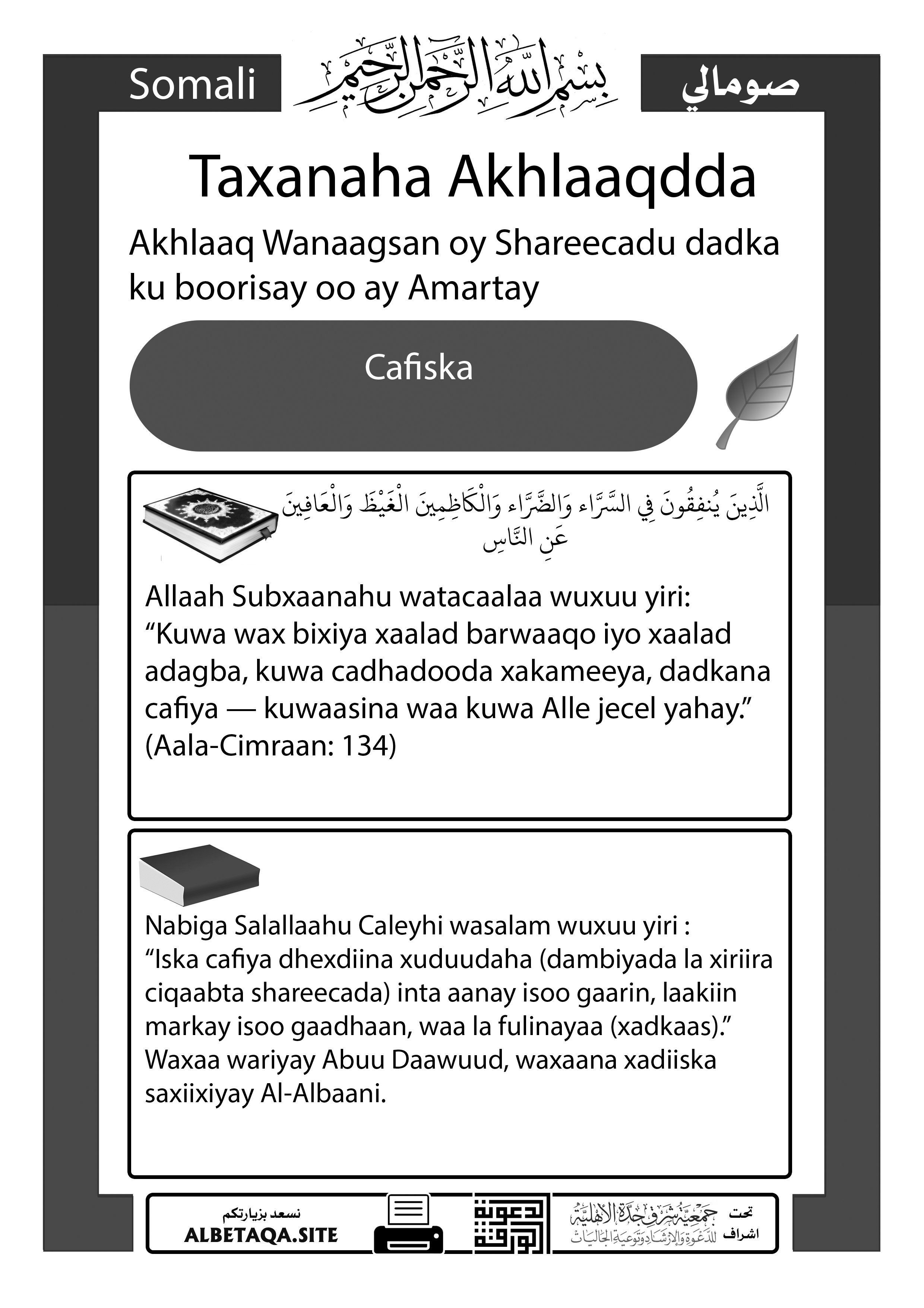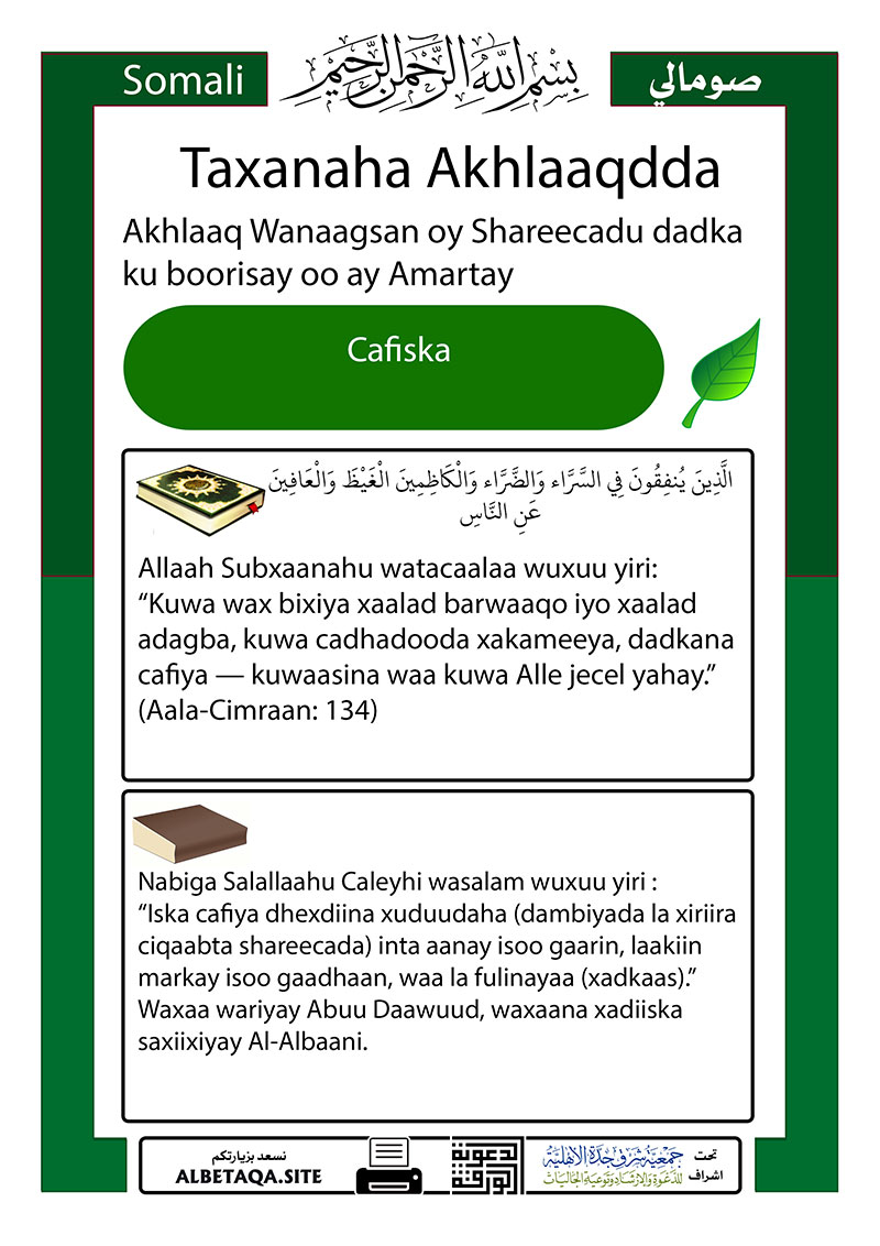 Taxanaha Akhlaaqdda – Cafiska