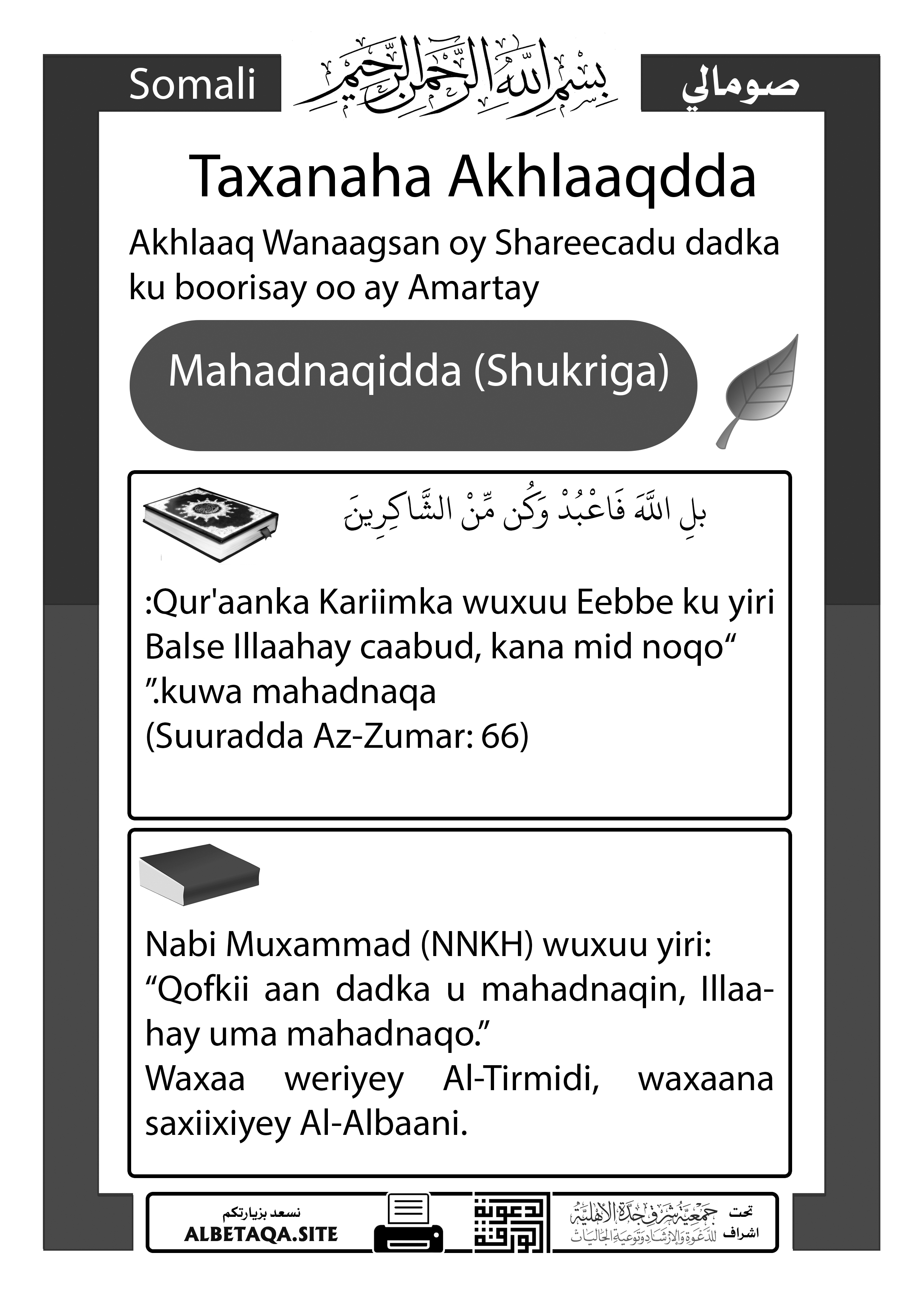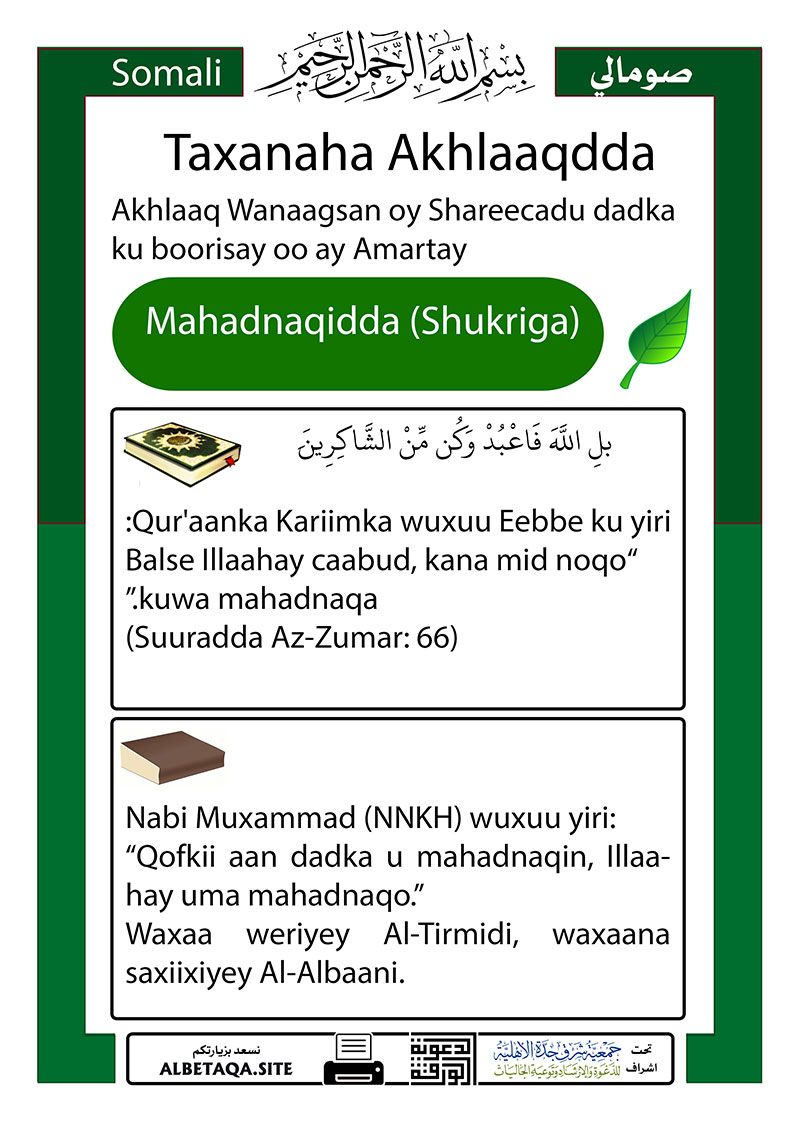 Taxanaha Akhlaaqdda – Mahadnaqidda (Shukriga)