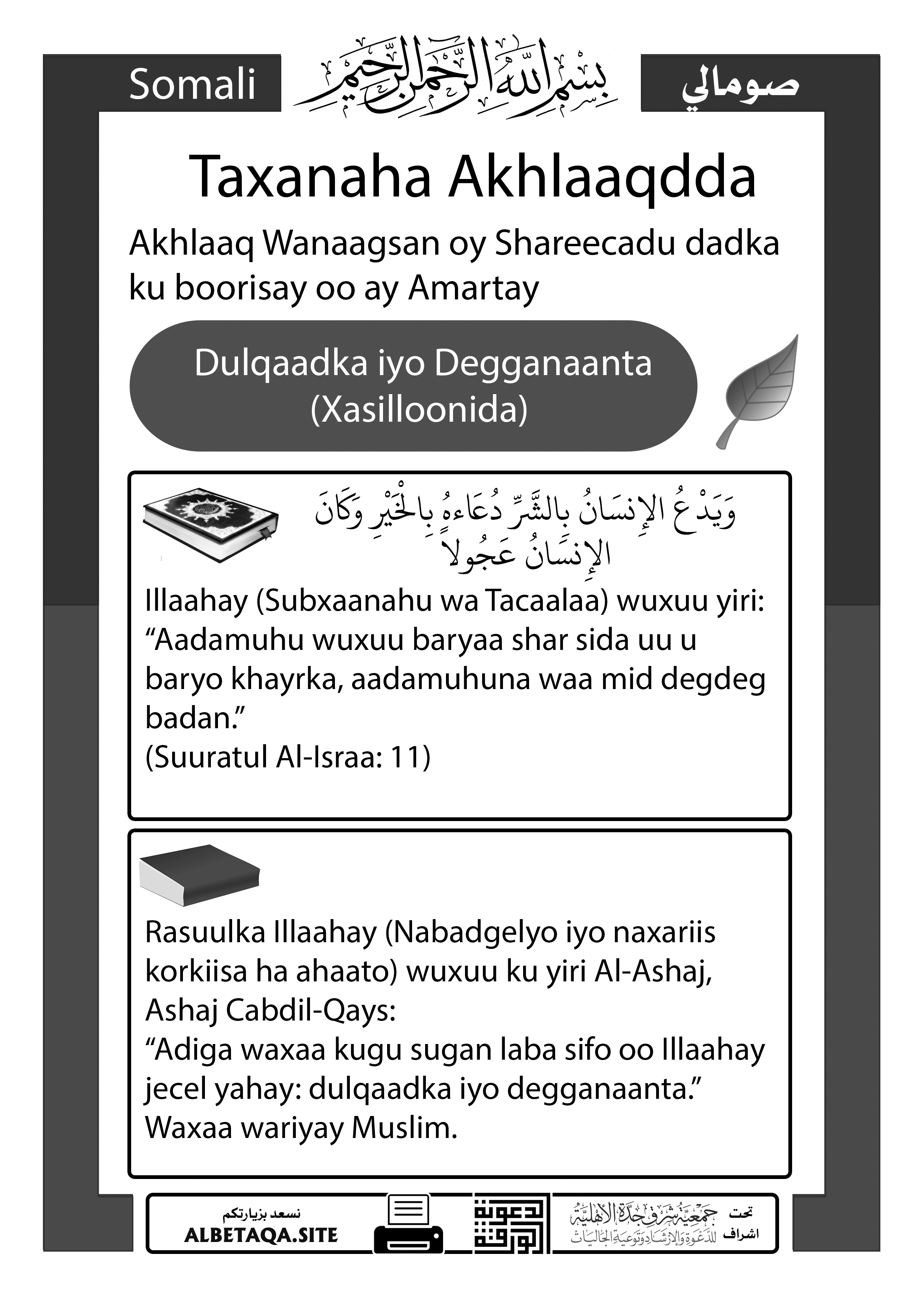 Taxanaha Akhlaaqdda – Dulqaadka iyo Degganaanta (Xasilloonida)