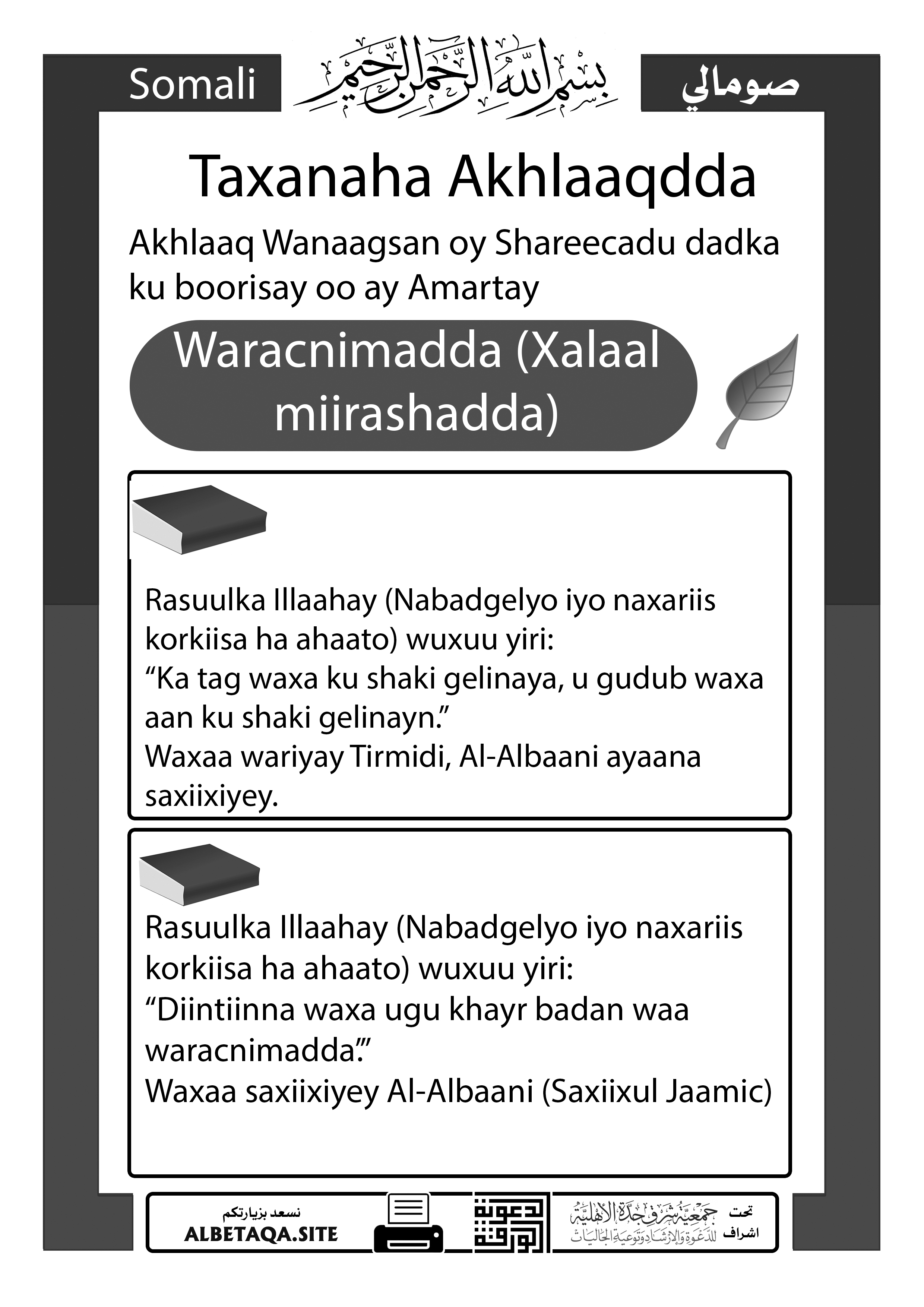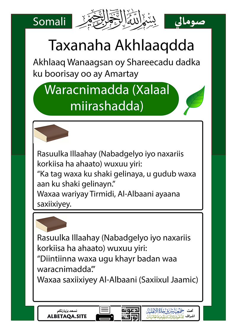 Taxanaha Akhlaaqdda – Waracnimadda (Xalaal miirashadda)
