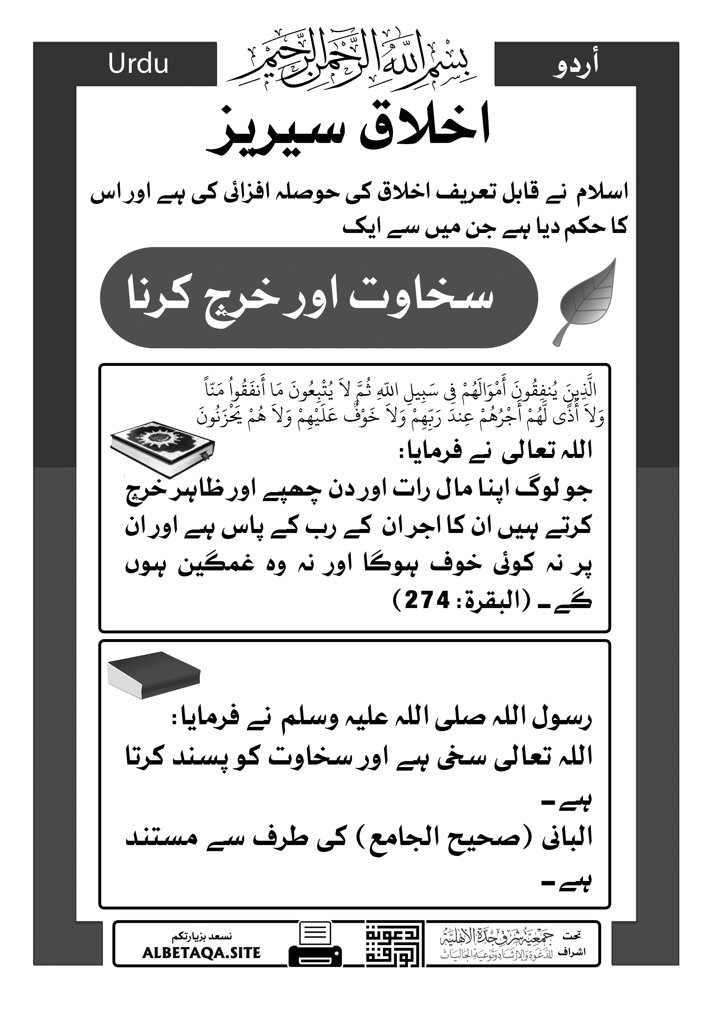 اخلاقی سلسلہ – سخاوت اور خرچ /