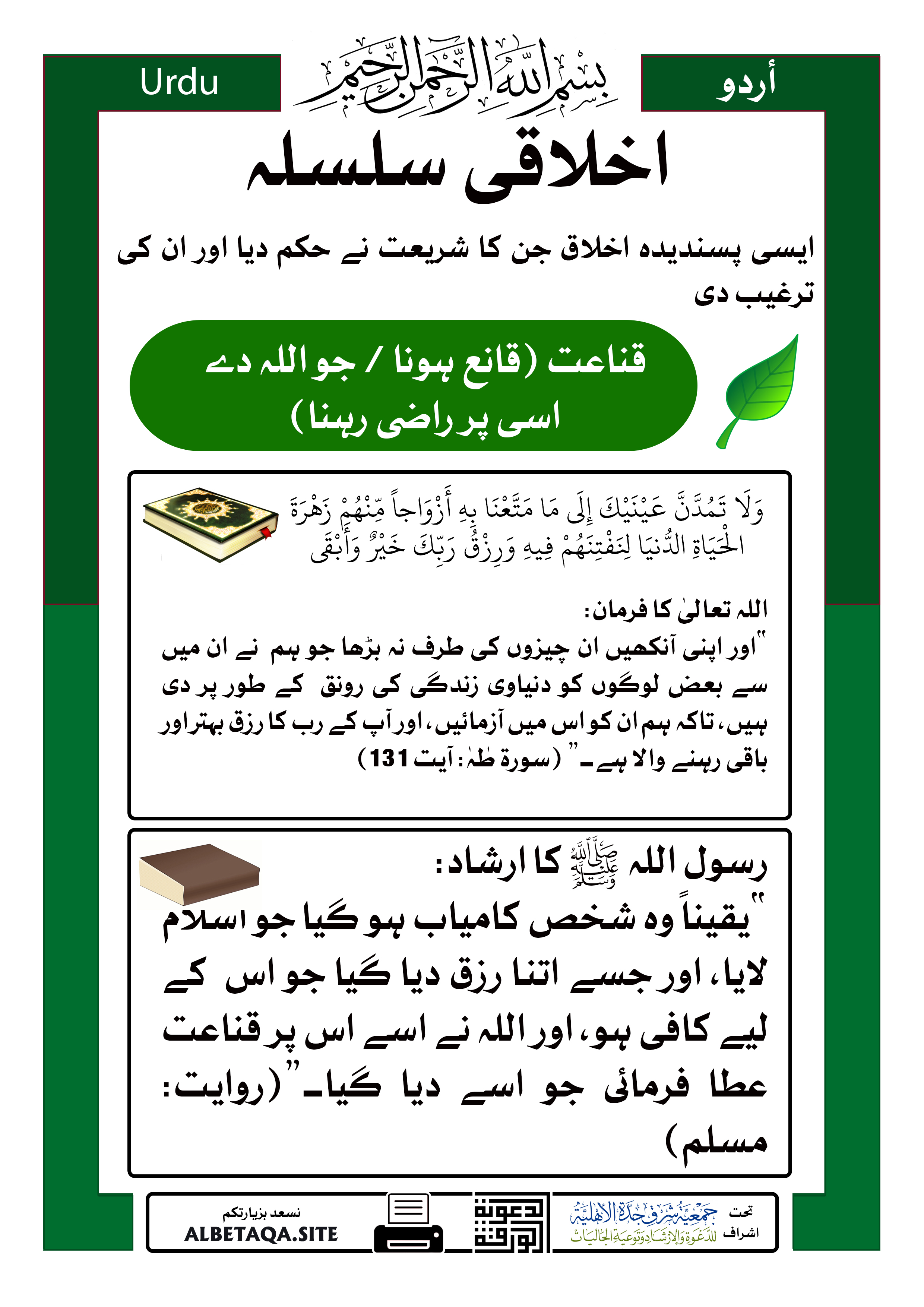 قناعت (قانع ہونا / جو اللہ دے اسی پر راضی رہنا)
