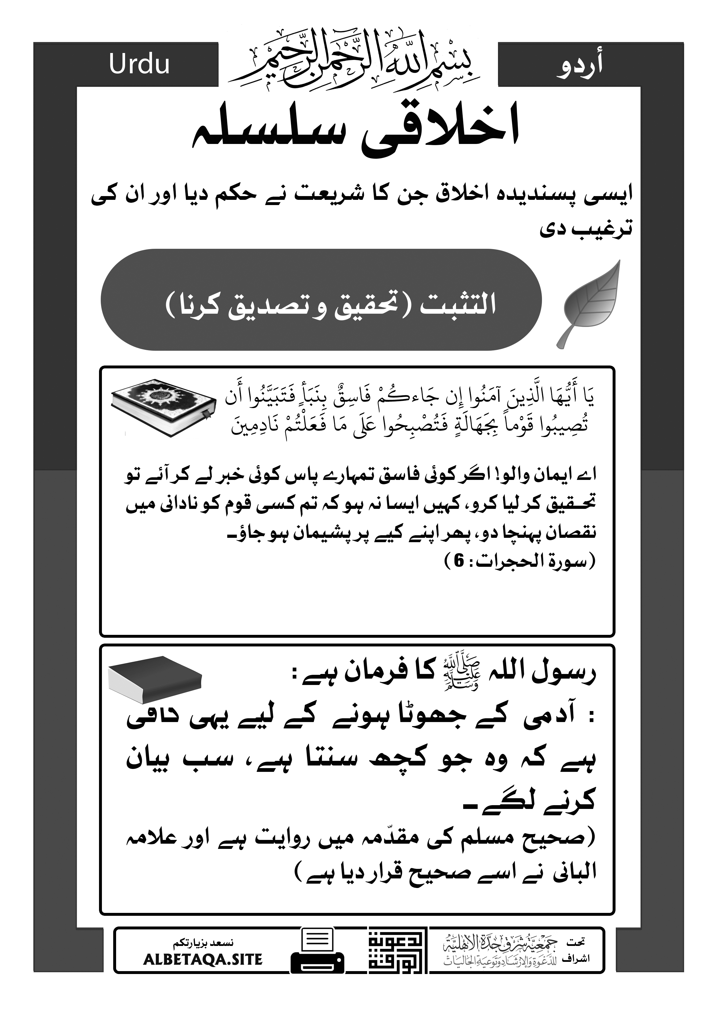 سلسلہ اخلاق سیریز – تحقیق و تصدیق