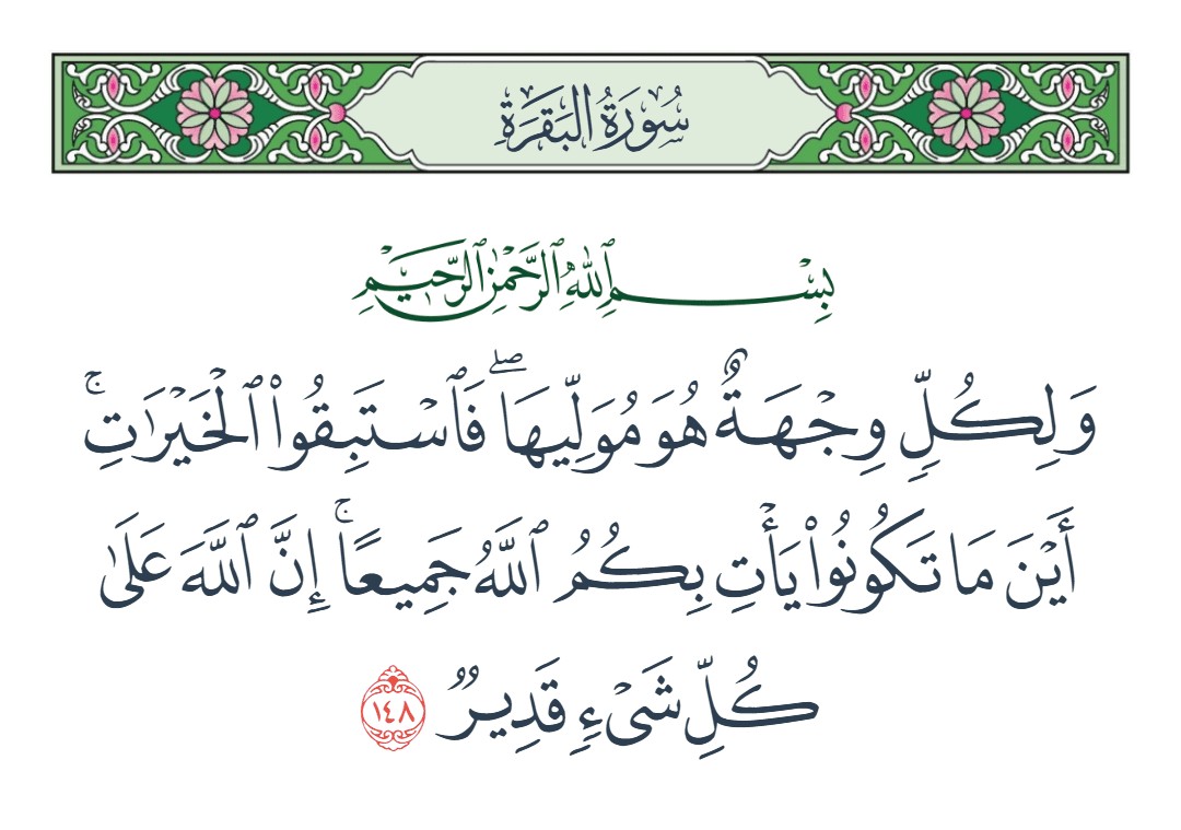 ولكل وجهة هو موليها فاستبقوا الخيرات أين ما تكونوا يأت بكم الله جميعا إن الله على كل شيء قدير [البقرة : 148]