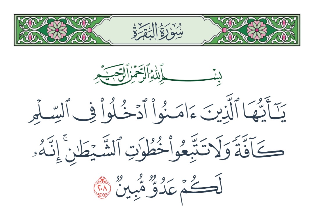 يا أيها الذين آمنوا ادخلوا في السلم كآفة ولا تتبعوا خطوات الشيطان إنه لكم عدو مبين [البقرة : 208]