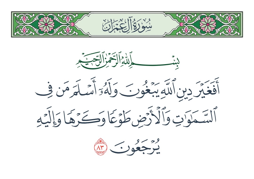 أفغير دين الله يبغون وله أسلم من في السماوات والأرض طوعا وكرها وإليه يرجعون [آل عمران : 83]