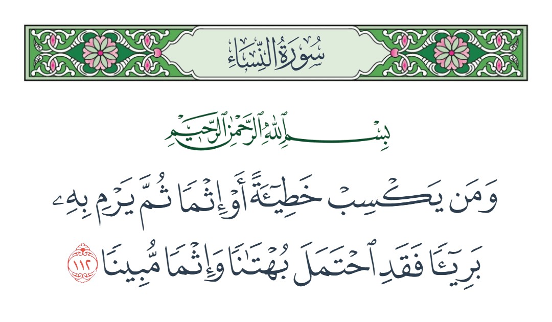 ومن يكسب خطيئة أو إثما ثم يرم به بريئا فقد احتمل بهتانا وإثما مبينا [النساء : 112]