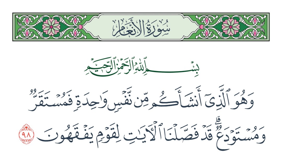 وهو الذي أنشأكم من نفس واحدة فمستقر ومستودع قد فصلنا الآيات لقوم يفقهون [الأنعام : 98]