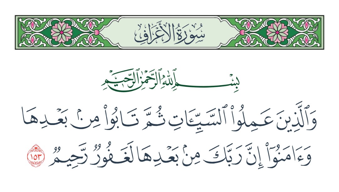 والذين عملوا السيئات ثم تابوا من بعدها وآمنوا إن ربك من بعدها لغفور رحيم [الأعراف : 153]