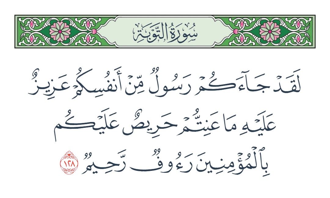 لقد جاءكم رسول من أنفسكم عزيز عليه ما عنتم حريص عليكم بالمؤمنين رؤوف رحيم [التوبة : 128]