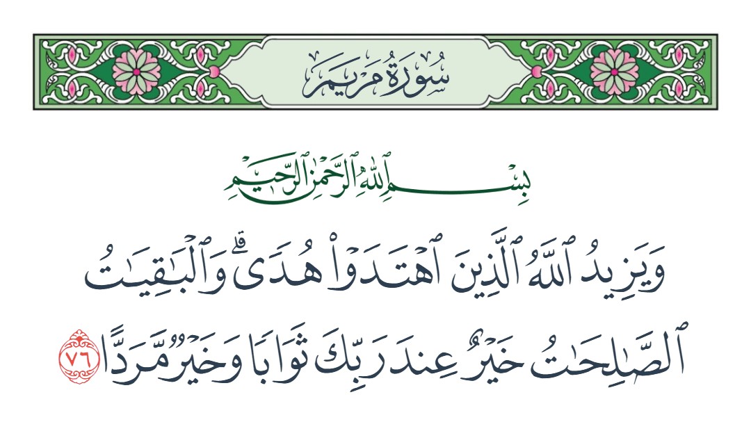 ويزيد الله الذين اهتدوا هدى والباقيات الصالحات خير عند ربك ثوابا وخير مردا [مريم : 76]