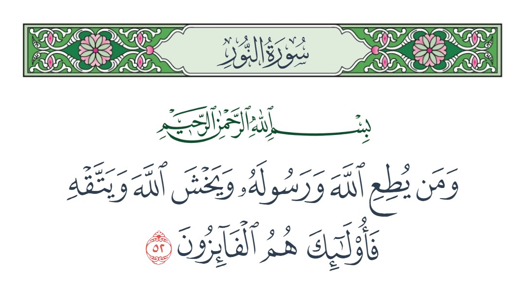 ومن يطع الله ورسوله ويخش الله ويتقه فأولئك هم الفائزون [النور : 52]