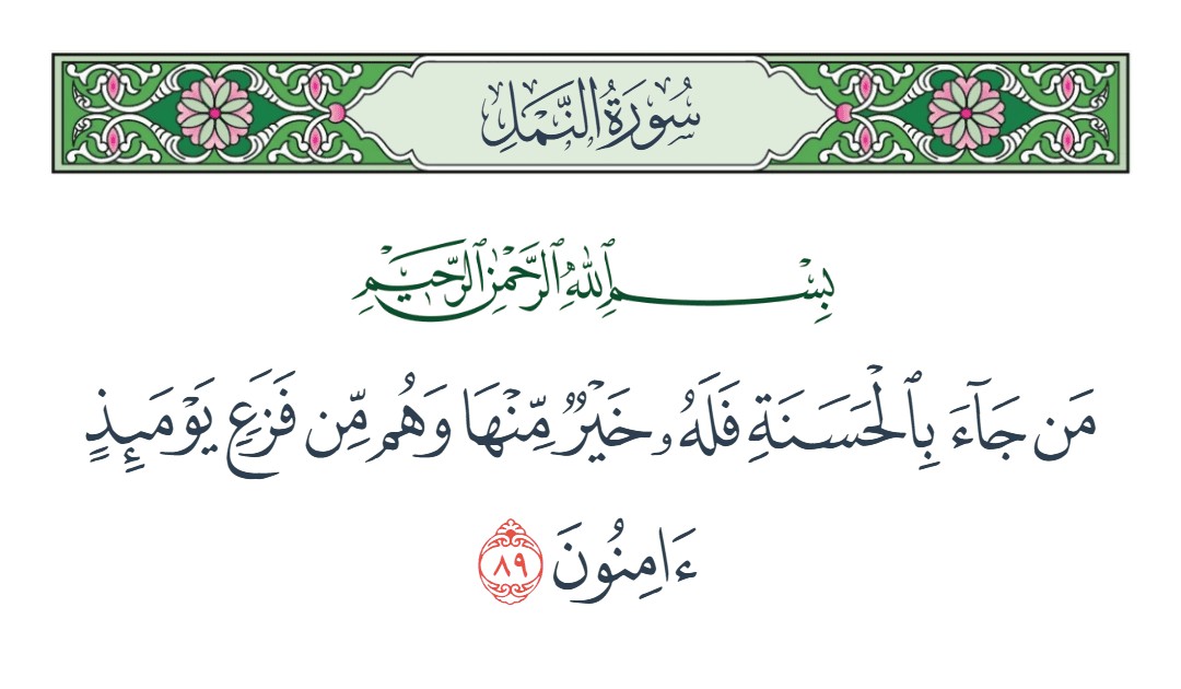 من جاء بالحسنة فله خير منها لمشاهدة الصورة بحجمها الأصلي اضغط هنا تنزيل الصورة : ملف نصّي من جاء بالحسنة فله خير منها بسم الله الرحمن الرحيم من جاء بالحسنة فله خير منها وهم من فزع يومئذ آمنون [النمل : 89] نسخ النص بالضغط على هذا الزر .. سيتم نسخ النص إلى الحافظة .. حيث يمكنك مشاركته من خلال استعمال الأمر ـ " لصق " ـ سلسلة بطاقات بلغوا عني ولو آية شارك :