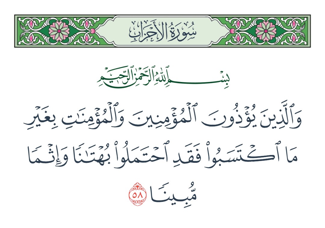 والذين يؤذون المؤمنين والمؤمنات بغير ما اكتسبوا فقد احتملوا بهتانا وإثما مبينا [الأحزاب : 58]
