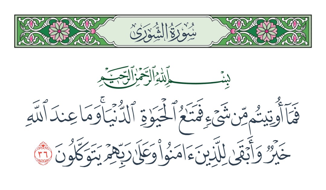 فما أوتيتم من شيء فمتاع الحياة الدنيا وما عند الله خير وأبقى للذين آمنوا وعلى ربهم يتوكلون [الشورى : 36]