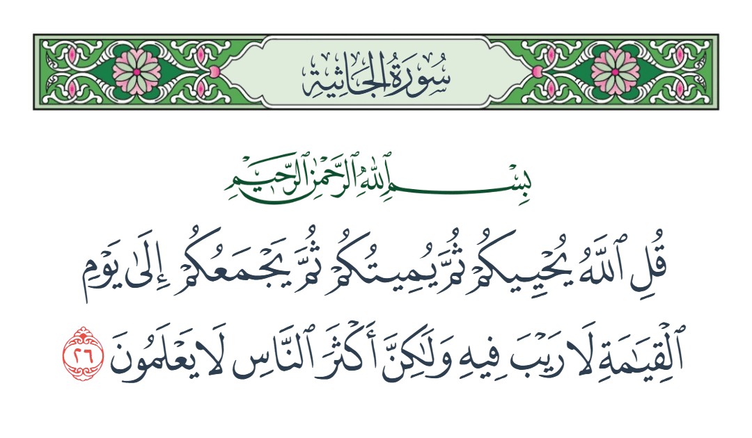 قل الله يحييكم ثم يميتكم ثم يجمعكم إلى يوم القيامة لا ريب فيه ولكن أكثر الناس لا يعلمون [الجاثية : 26]