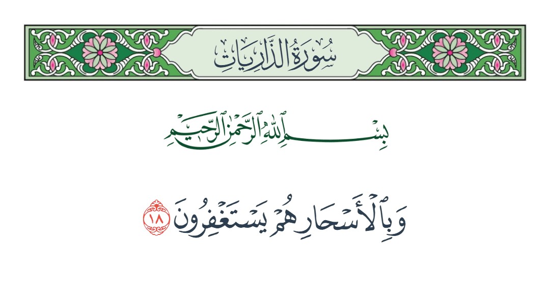وبالأسحار هم يستغفرون لمشاهدة الصورة بحجمها الأصلي اضغط هنا تنزيل الصورة : ملف نصّي وبالأسحار هم يستغفرون بسم الله الرحمن الرحيم وبالأسحار هم يستغفرون [الذاريات : 18] نسخ النص بالضغط على هذا الزر .. سيتم نسخ النص إلى الحافظة .. حيث يمكنك مشاركته من خلال استعمال الأمر ـ " لصق " ـ سلسلة بطاقات بلغوا عني ولو آية شارك :
