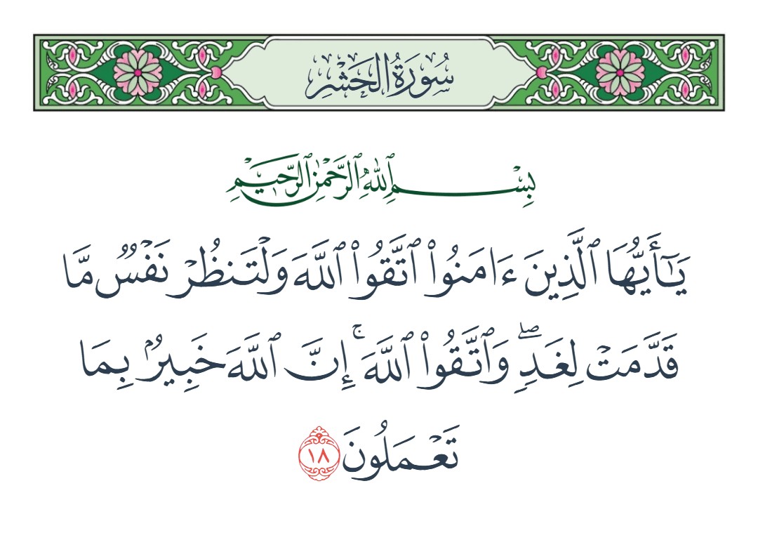يا أيها الذين آمنوا اتقوا الله ولتنظر نفس ما قدمت لغد واتقوا الله إن الله خبير بما تعملون [الحشر : 18]